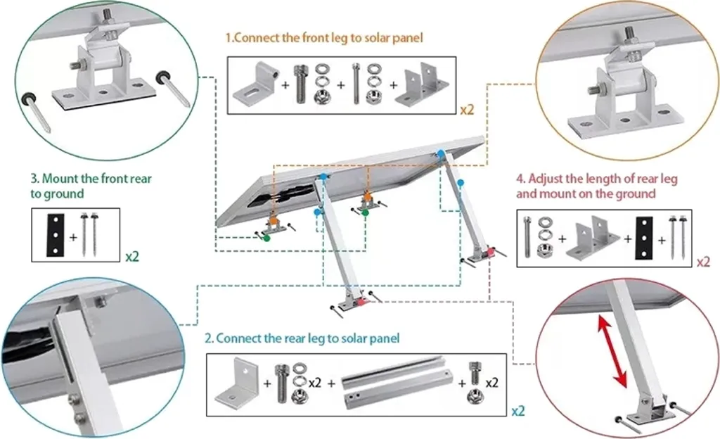 1 Satz Solarpanel Halterung, Solarhalterung, Modul 15-30° Individuell Einstellbarer Flachdach Montagewinkel,Mobile Solaranlagen