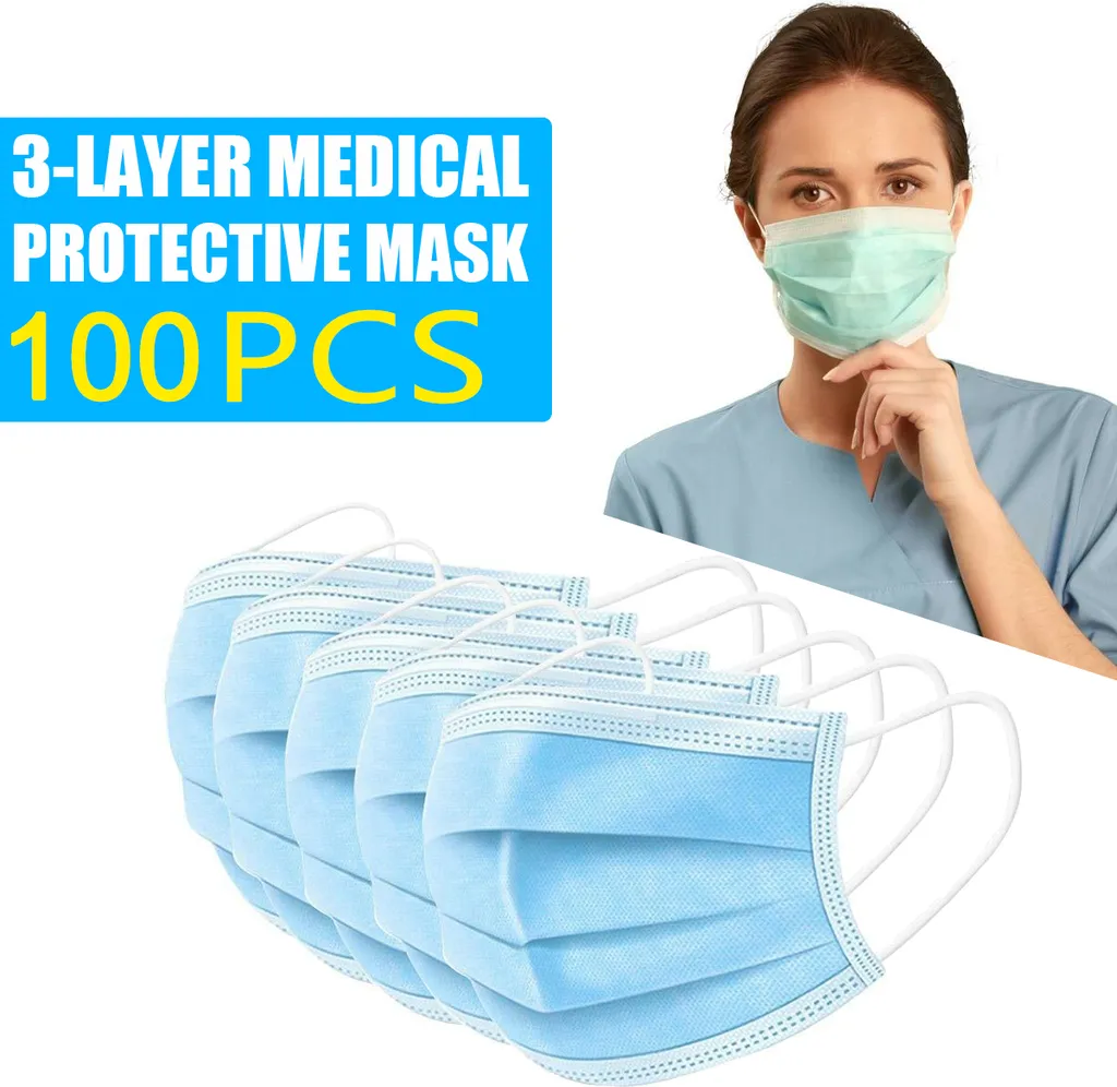 100st X Mundschutz 3 Lagig ,Einweg Atemschutz Maske CE Hygieneschutz Gesichtsmaske Ab 12. Juni