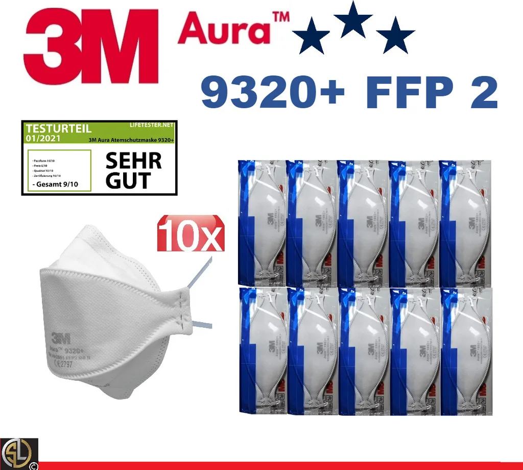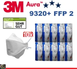 | Zusätzliche Varianten | 10er Pack 3M™ Aura™ Atemschutzmaske 9320+ FFP2 FFP 2 I CE2797 I ohne Ventil, 20x 3M FFP2 NR D Aura 9320+ Atemschutzmaske Mundschutz Maske ohne Ventil |