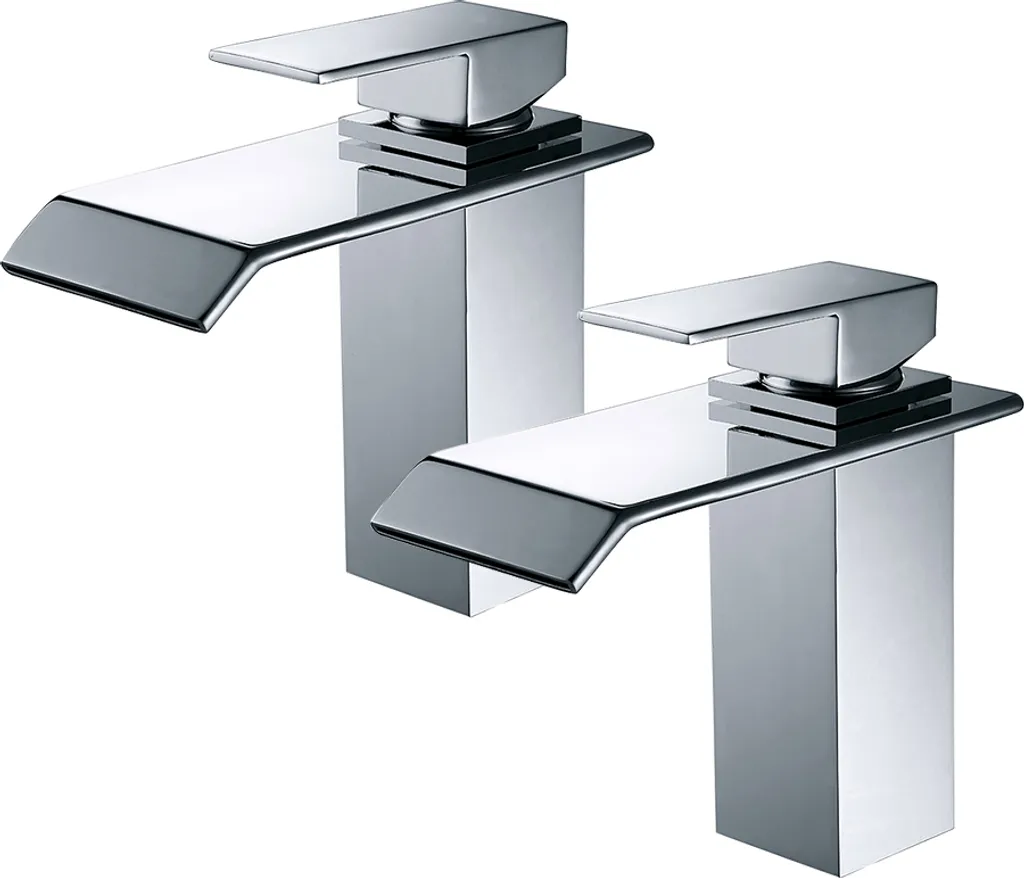 2X Wasserhahn Bad Wasserfall Waschtischarmatur Badarmatur Chrom Waschbeckenarmatur Einhebelmischer Armatur Für Bad