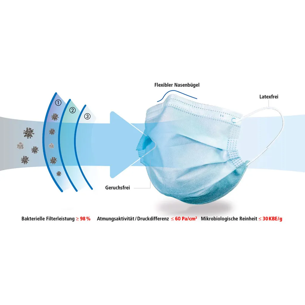 3-lagige Medizinische Gesichtsmaske Typ II R Von BLF Protection, Blau
