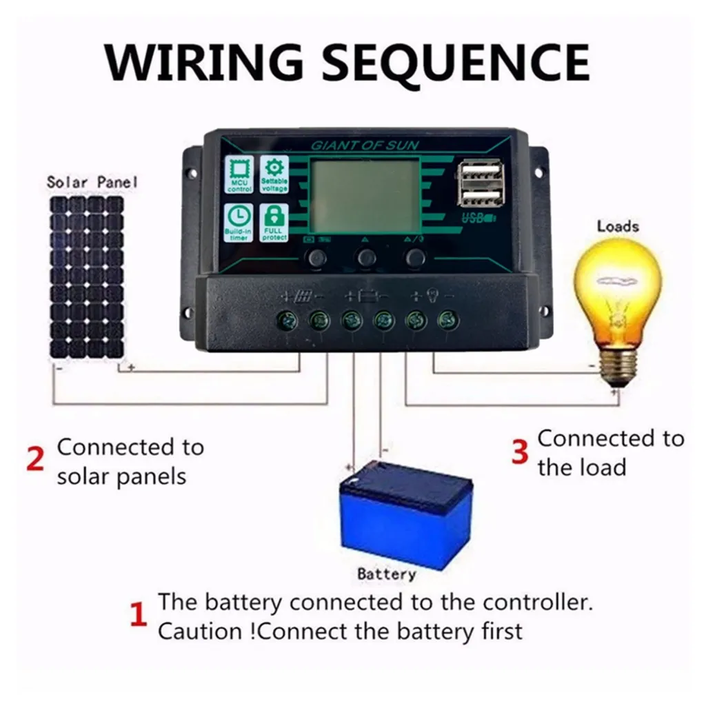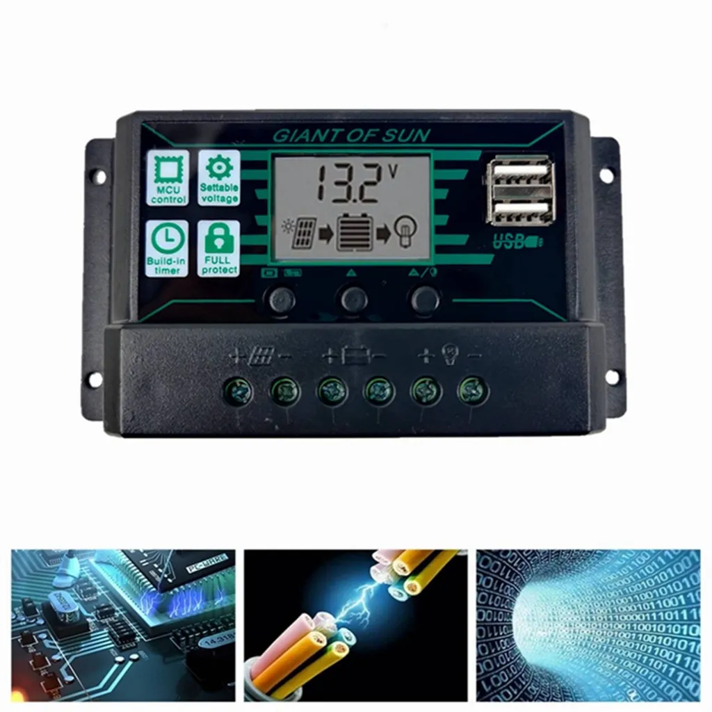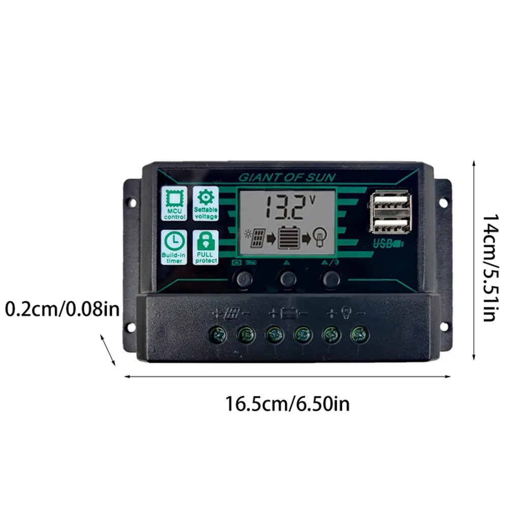 50A MPPT Solar Laderegler, Solarregler Solarpanel Controller Regulator, PWM Dual USB Photovoltaik Panel, Schwarz