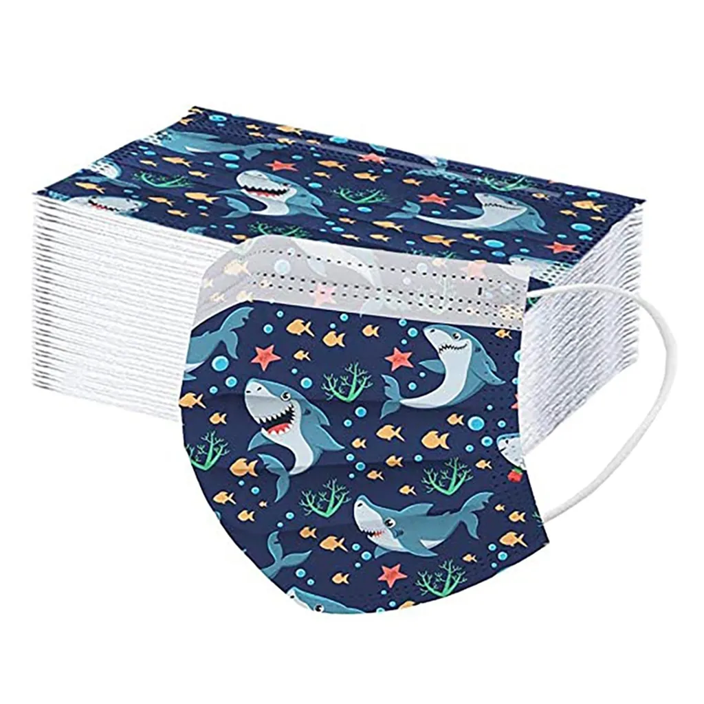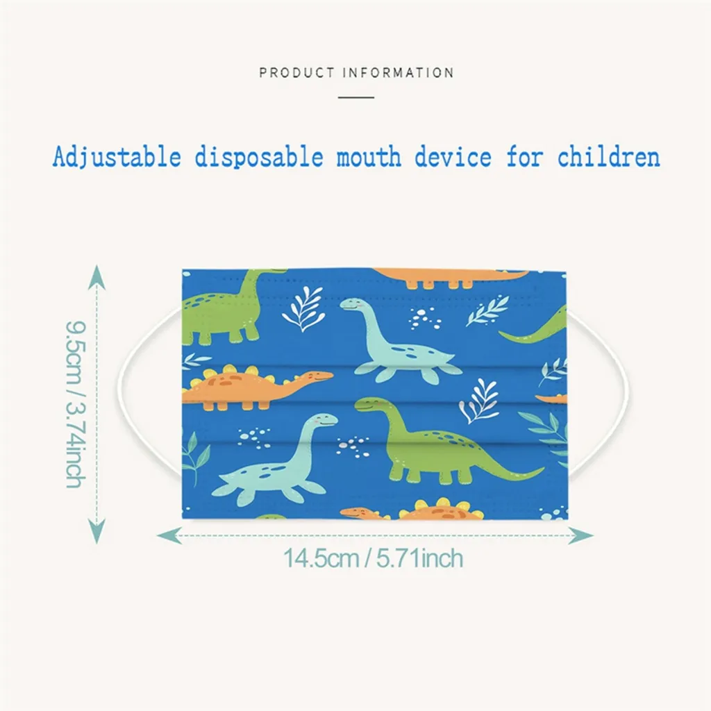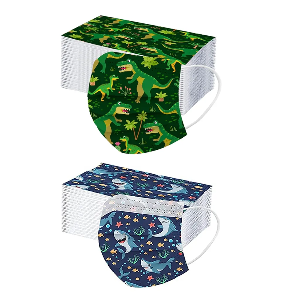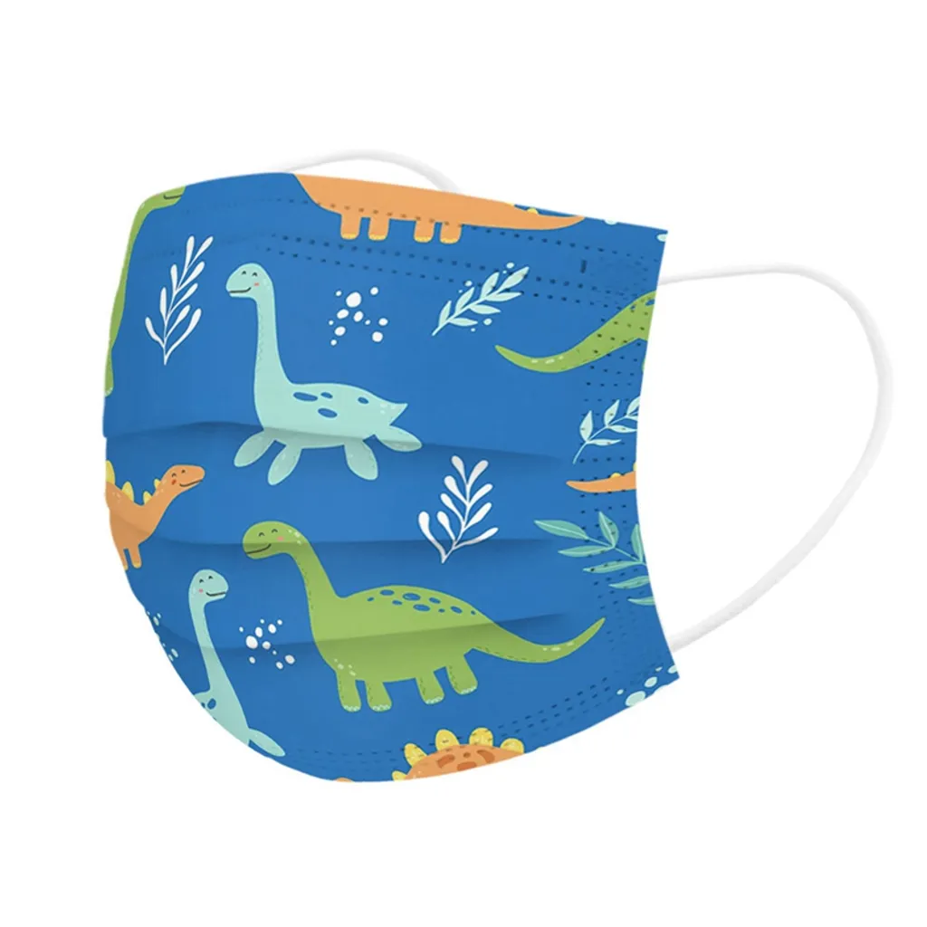 60 Stück Kinder 3-lagige Einweg-Mundmaske Cartoon Dinosaurier Gesichtsmaske Blau Einwegmasken