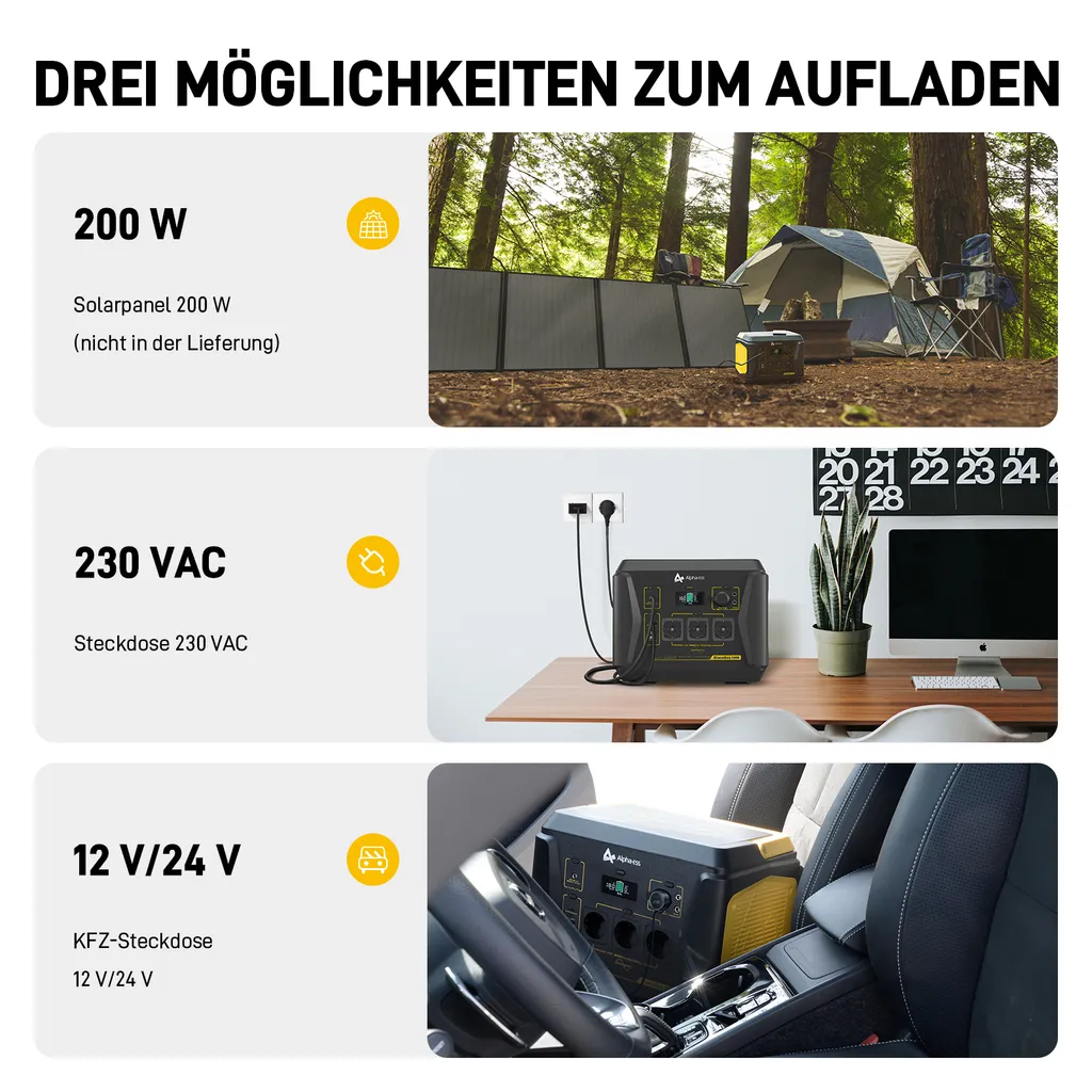 AlphaESS Tragbare Powerstation 1036Wh Solargenerator Mit 3 X AC 1000 W(2000 W Überspannung)