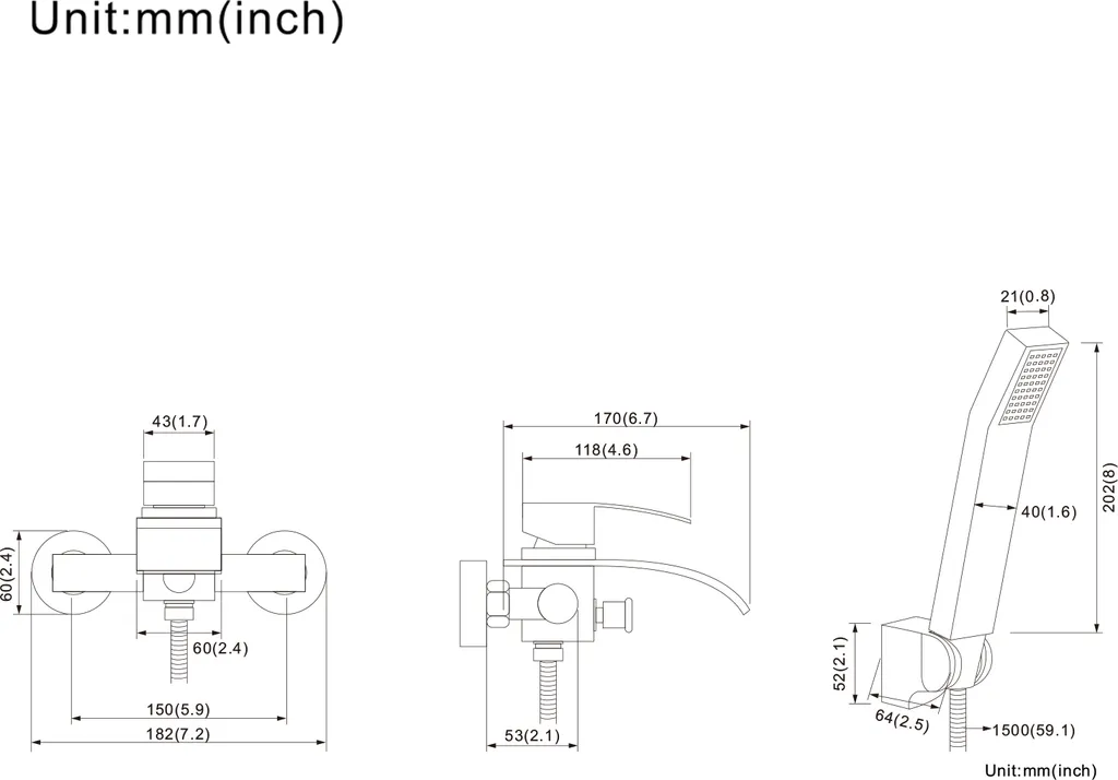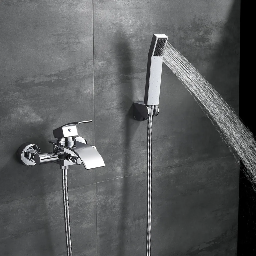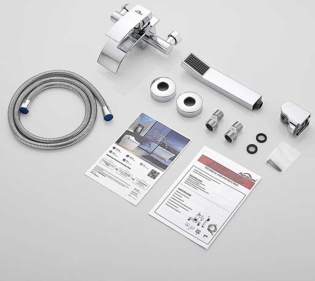 Auralum Badewannenarmatur Mit Handbrause, Brauseschlauch Und Brausehalter, Messing Einhebel-Wannenarmatur Duscharmatur Wasserfall Wannenbatterie Badarmatur Duschset