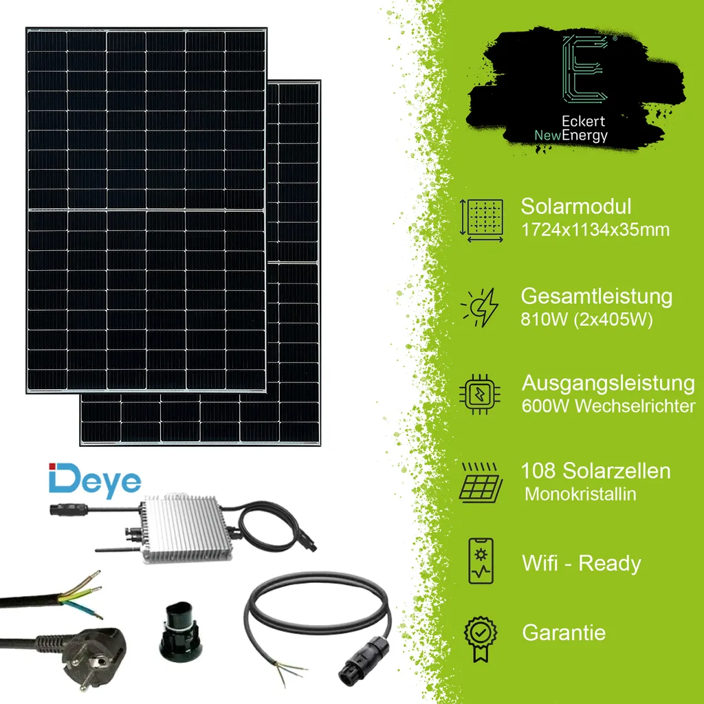Balkonkraftwerk 600 / 810 Watt WIFI Photovoltaik Solar Mini-PV