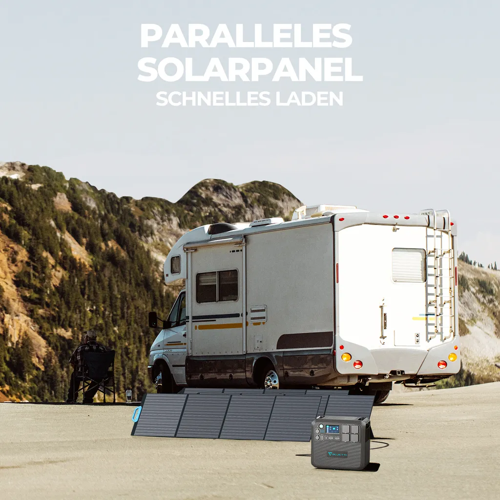 BLUETTI 2000W Tragbarer Stromerzeuger Mit PV200 Solarpanel Mit AC200P Solar Generator Kit Mit 3pcs 200W Faltbares Solarpanel, 2000Wh LiFePO4 Batterie Portable Power Station Backup Für Reise Camping Emergency
