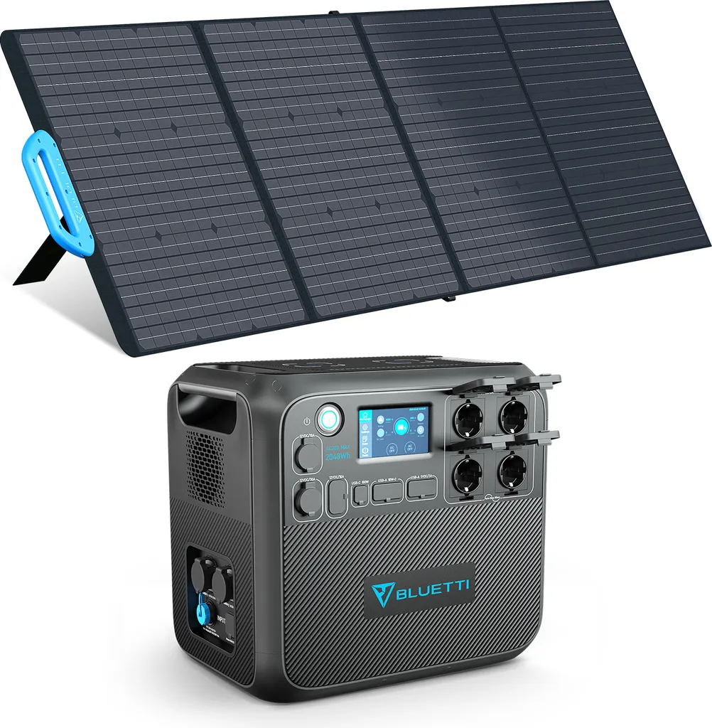BLUETTI Solarspeicher AC200MAX Mit PV200 200W Solarpanel, 2048Wh Tragbarer Stromerzeuger Mit 4 2200W AC Ausgängen, LiFePO4 Akkupack Erweiterbar Auf 8192Wh Für Den Hausgebrauch, Notfall, Reise