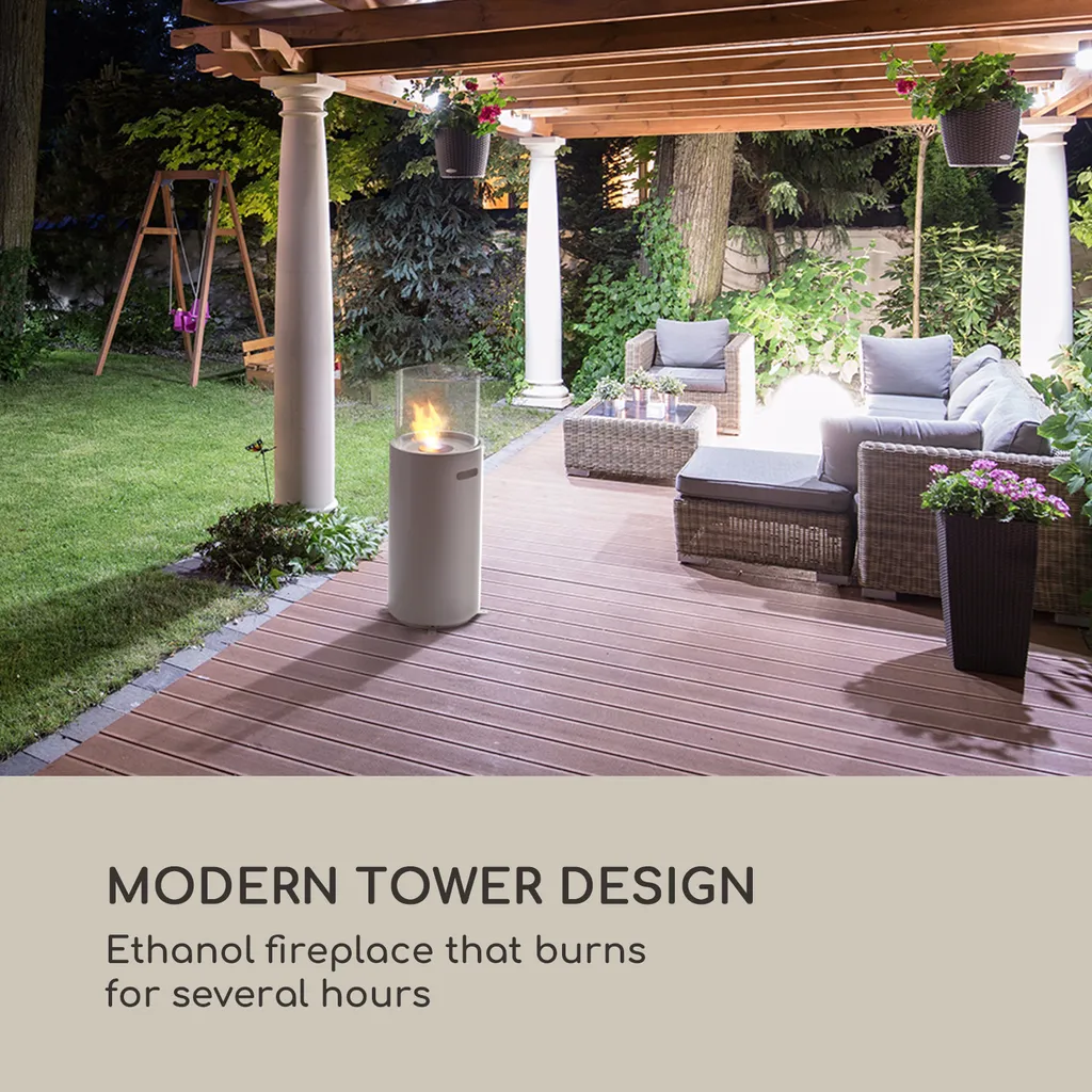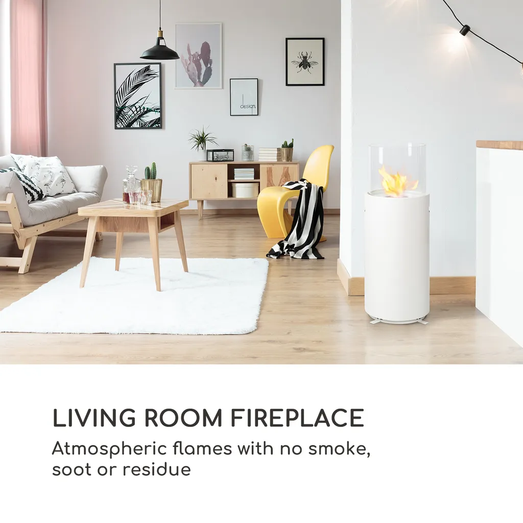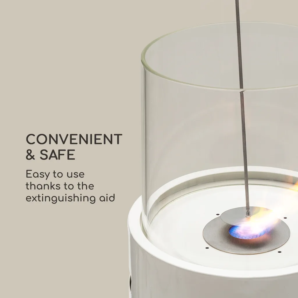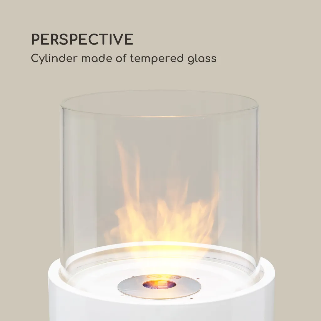 Blumfeldt Fiamme Tamburo , Ethanol-Kamin , Edelstahl-Brenner 0,8 Liter , 4-5 H Brenndauer , Zylinder Aus Gehärtetem Glas , Inklusive Löschwerkzeug