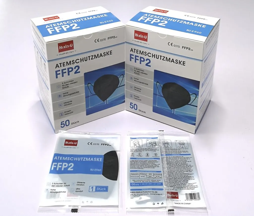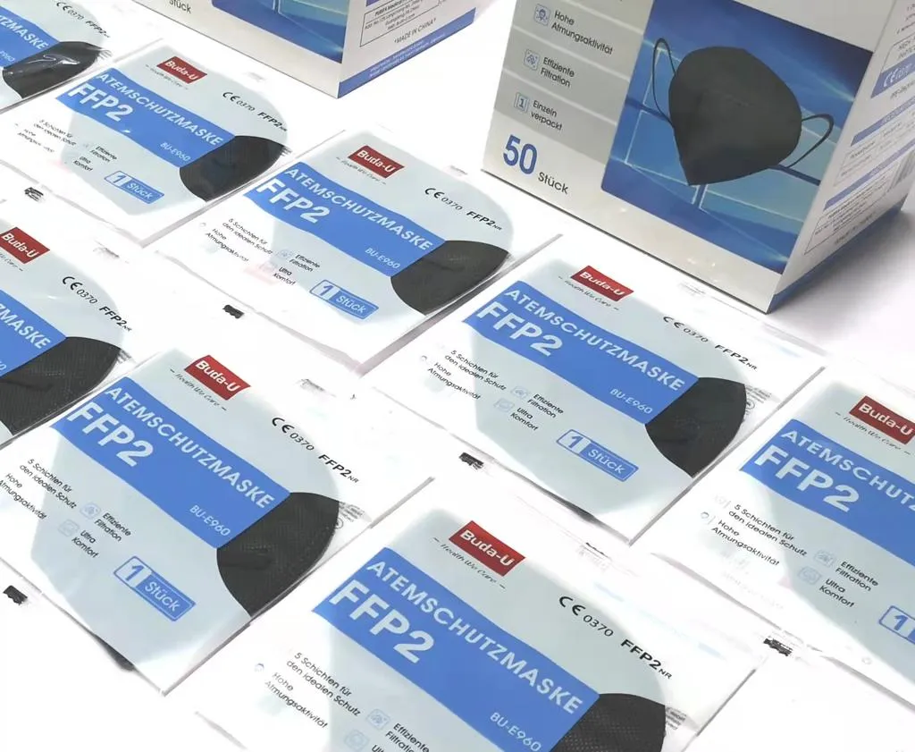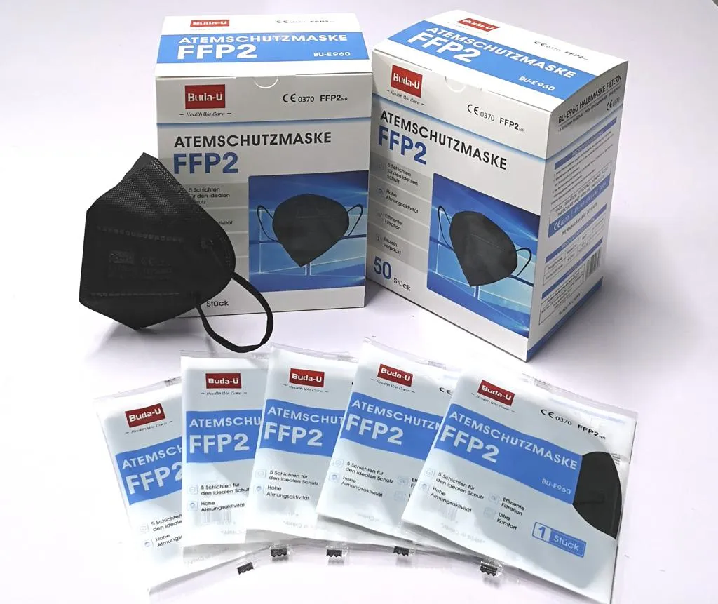 Buda-Ü FFP2 Masken CE0370 Schwarz (50 Stück)