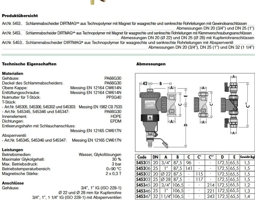 Caleffi 5453 DIRTMAGPLUS® – 22mm Schlammabscheider Mit Kugelhähnen Und Magnet