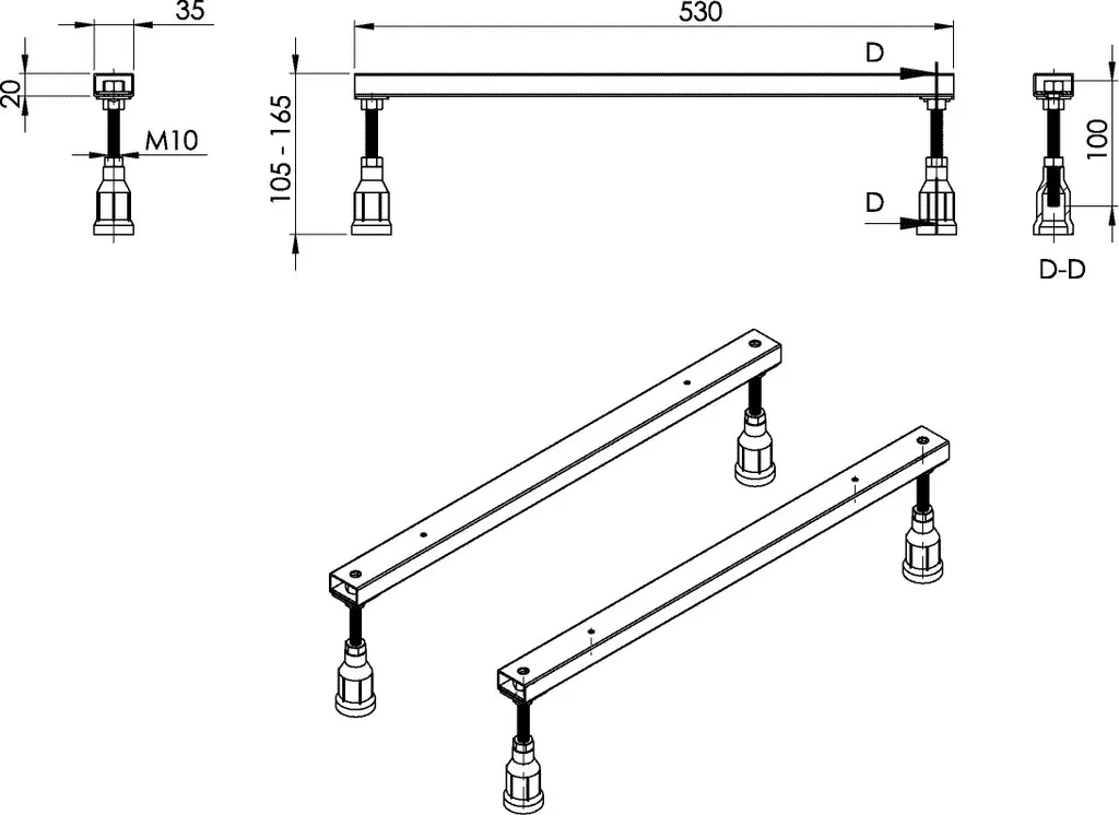 Calmwaters® Höhenverstellbare Wannenfüße Für Freistehende Badewannen, Mit Verzinkten Stahl-Profilen Zur Montage Von Freistehenden Wannen, Standfuß Badewanne, Höhe Einstellbar, 03SL3487