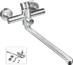 CMYBABEE Küchenarmatur Wannenarmatur Badarmatur, Wandmischbatterie, Wanneneinlauf 34 Cm Lang Mit Umstellventil, Duschbatterie, Einhebel-Brausebatterie Für Die Dusche Im Badezimmer, 304 Edelstahl