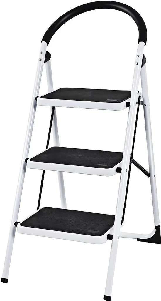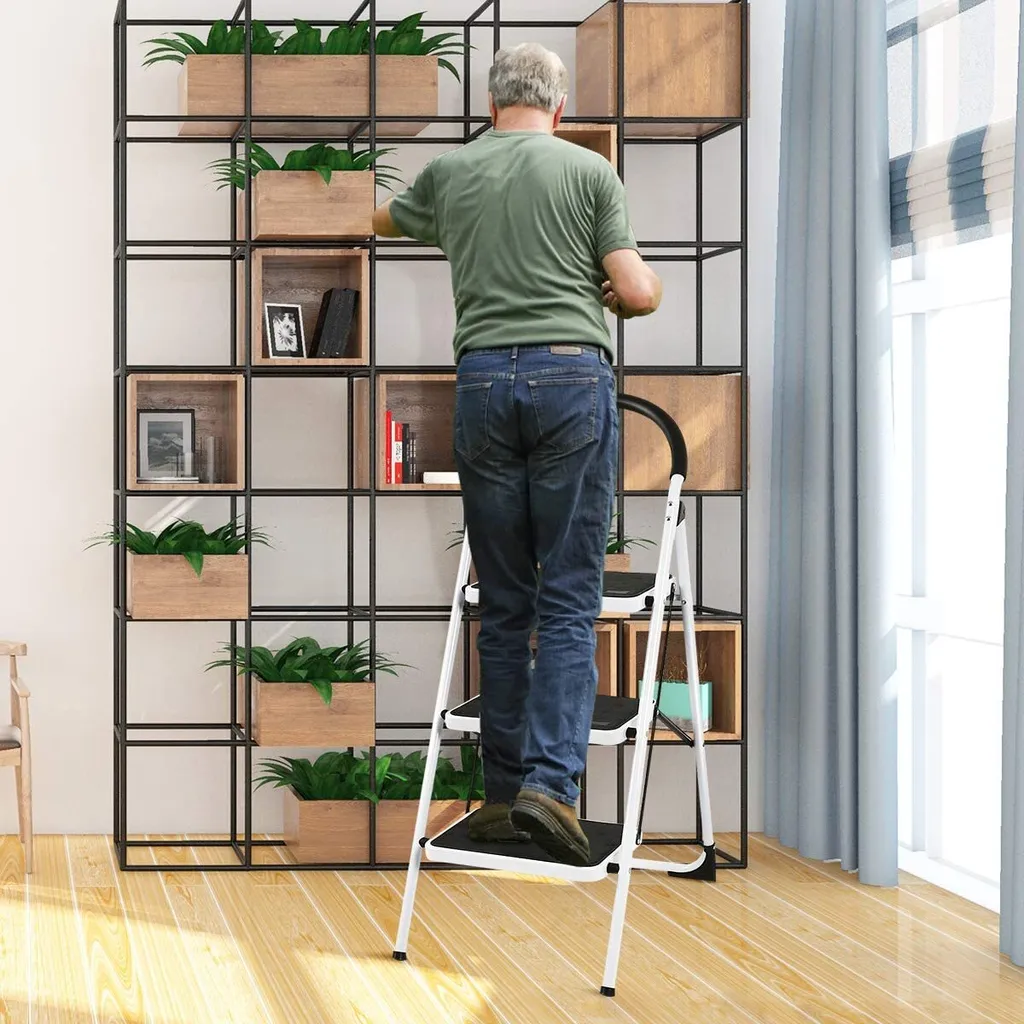 COSTWAY Trittleiter Klapptritt Weiss, Stehleiter Klappbar, Haushaltsleiter Stufenleiter Platzsparend, Metall, Stufenstehleiter 150 Kg Tragkraft 3-Stufen-Trittleiter