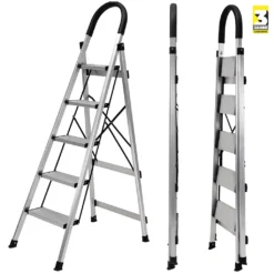 Craftfull Stehleiter CF-134A Klappleiter 5 Stufen Silber, Gummierte Standfüße, Alu Leiter Aluminiumleiter Aluleiter Mehrzweckleiter Multifunktionsleiter Haushaltsleiter Leiter