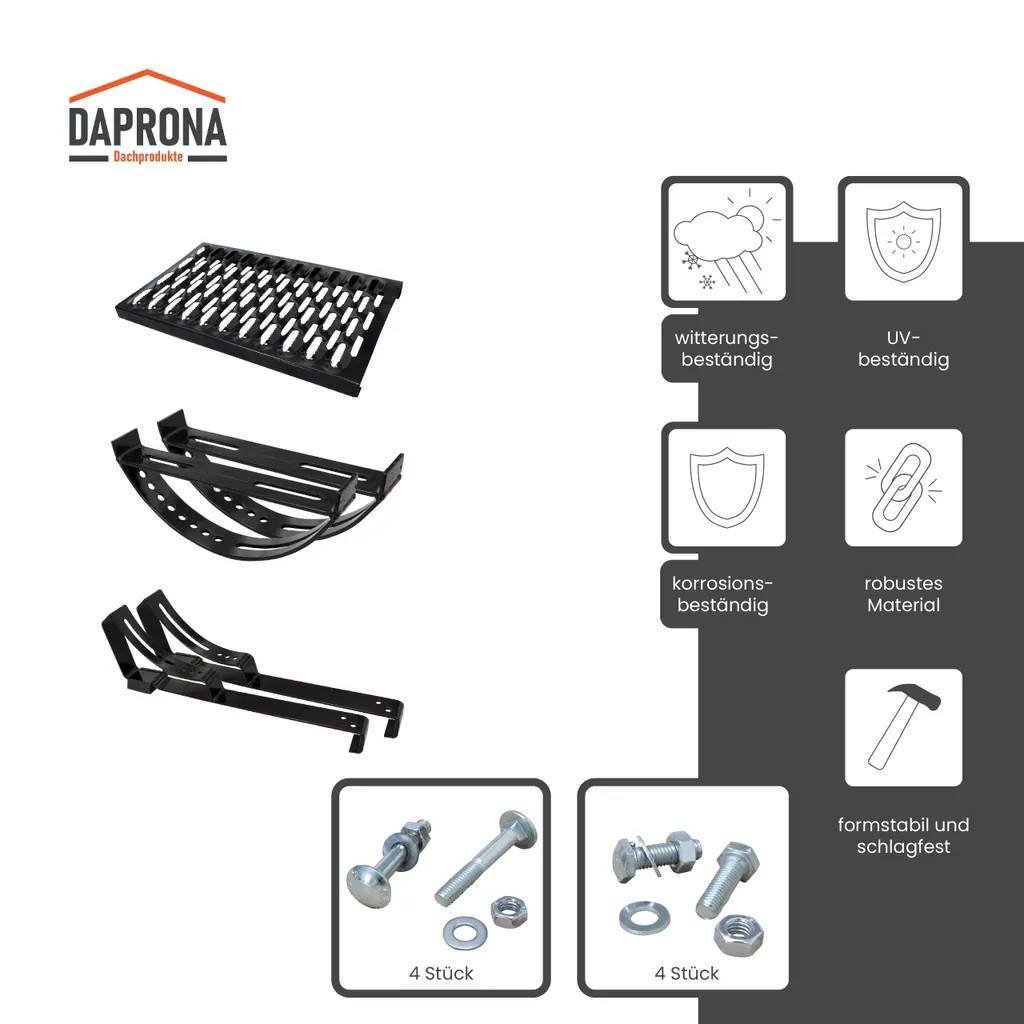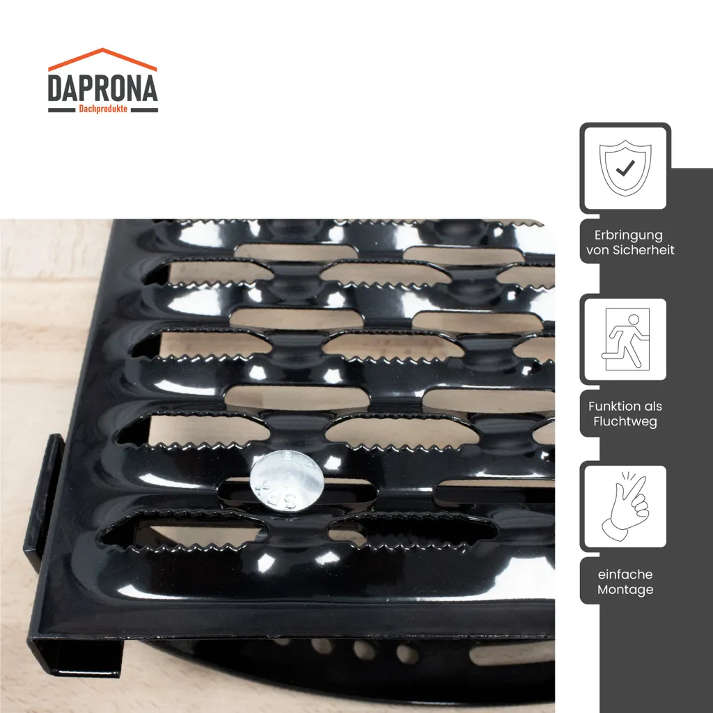 DAPRONA Laufrost Set Für Flache Dachziegel, Dachtritte Für Schornsteinfeger 120cm – Schwarz