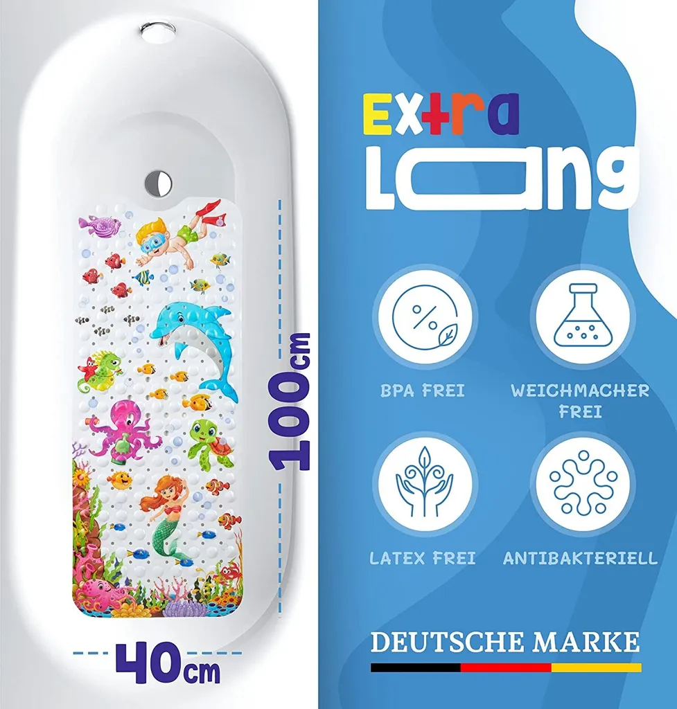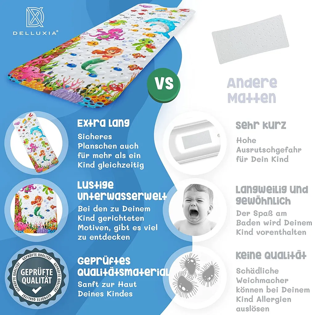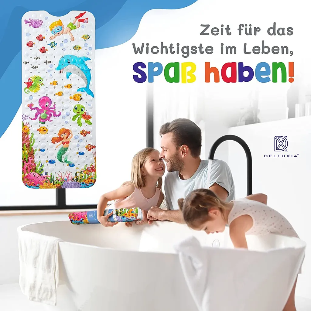Delluxia Badewannenmatte Kinder Rutschfest Mit Aufhängung I Geruchsfrei Und BPA Frei I 100x40cm Bunt I Antirutschmatte Badewanne I Badematte Schimmelresistent I Badespaß Inkl.