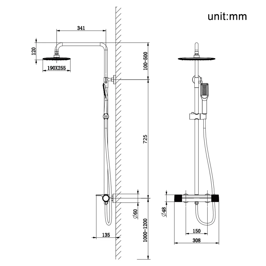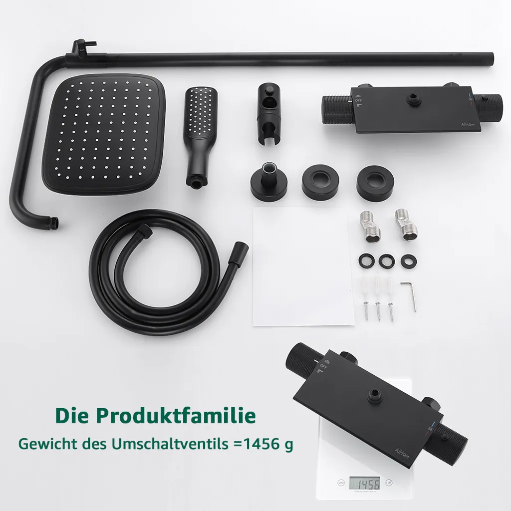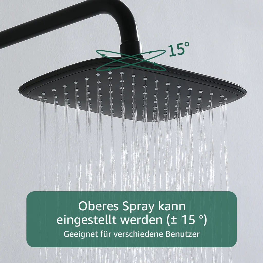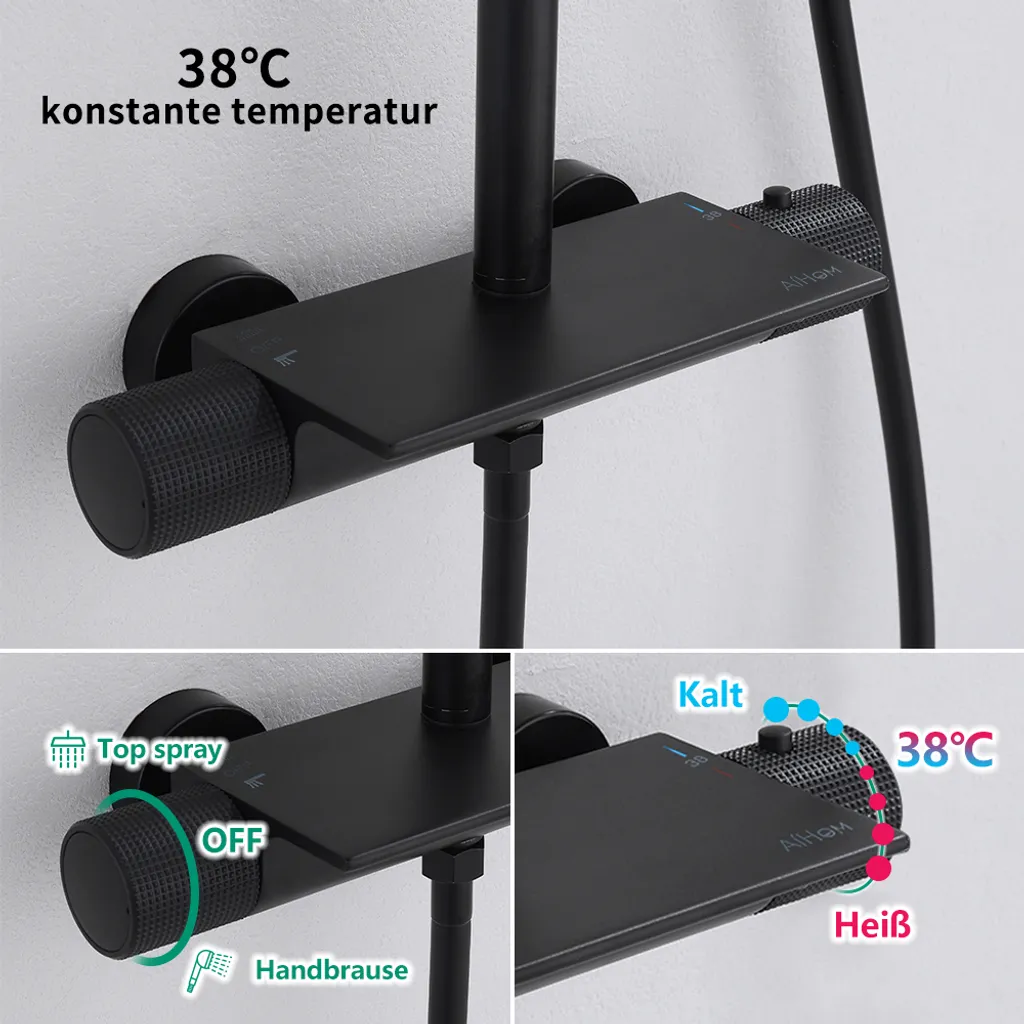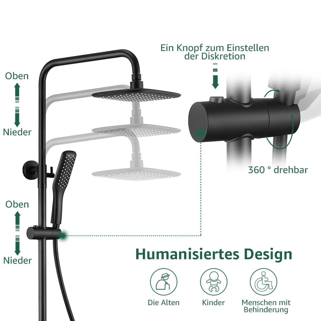 Duschsystem Mit Thermostat Duscharmatur Schwarz Regendusche Duschset Dusche Inkl. Regal Verstellbarer Duschstange Duschset Edelstahl