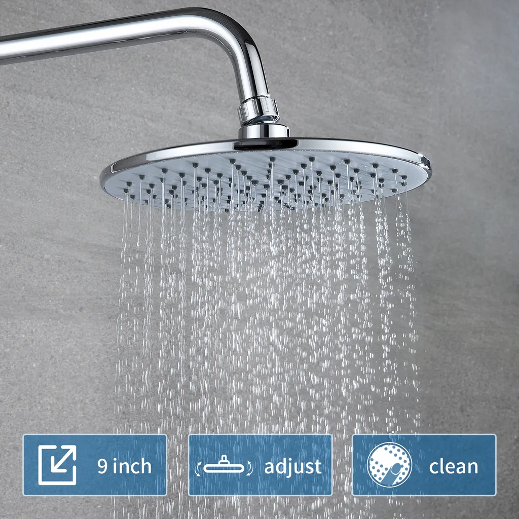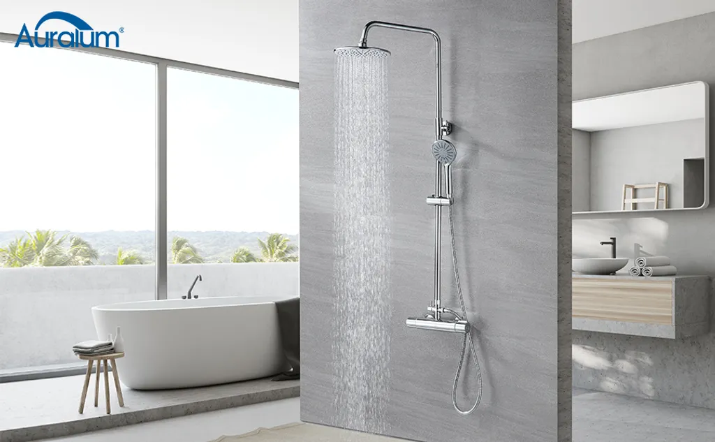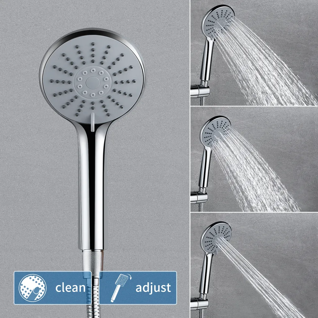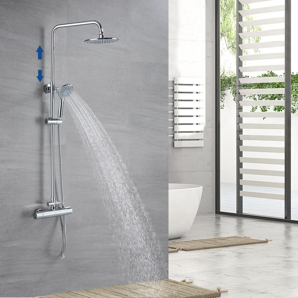 Duschsystem Mit Thermostat Regendusche Edelstahl Regenkopf Runde Duschsäule Duschgarnitur Duscharmatur Inkl. 3 Strahlarten Handbrause, Höhenverstellbar Duschstange