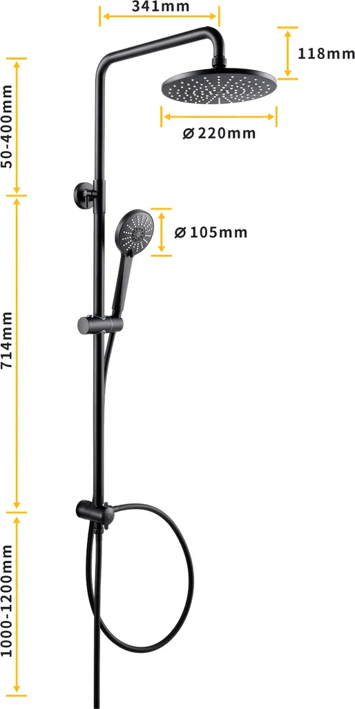Duschsystem Trennbar, Schwarz , Badewannenarmatur Wasserfall ,Duscharmatur ,Dusche 2 Funktion Handbrause ,Edelstahl Duschstange ,Regendusche Für Bad/Badewanne,keinen Wasserhahn