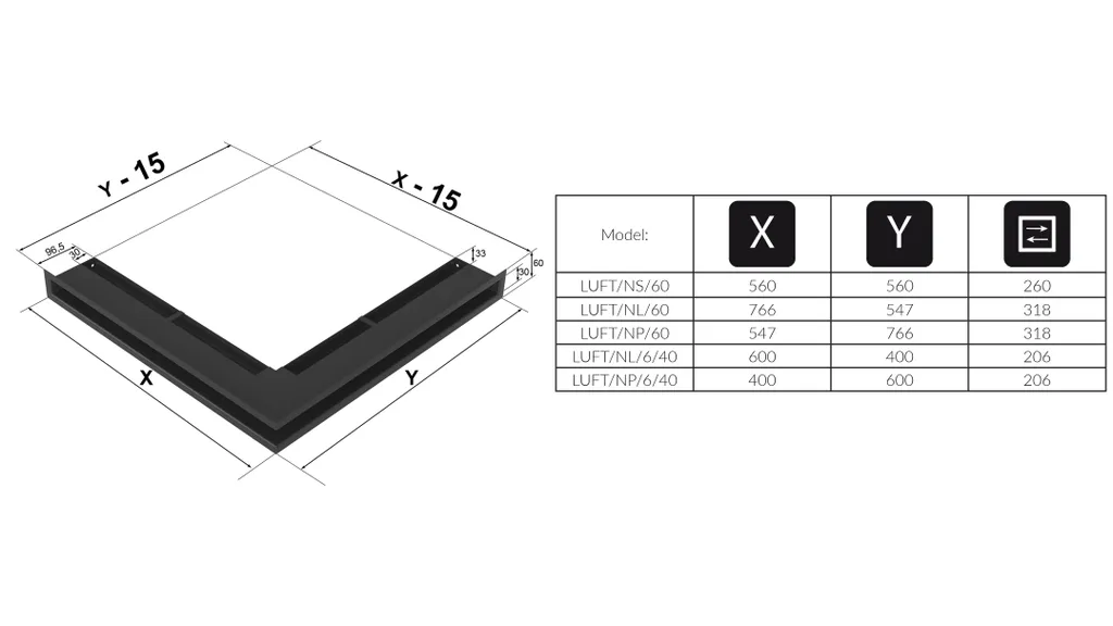 Eck-Lüftungsgitter LUFT Links 60x400x600