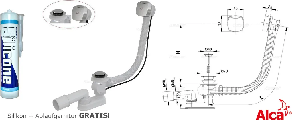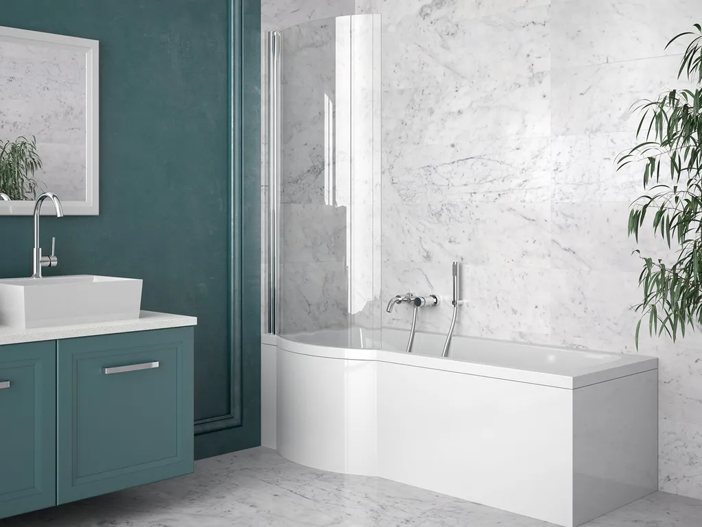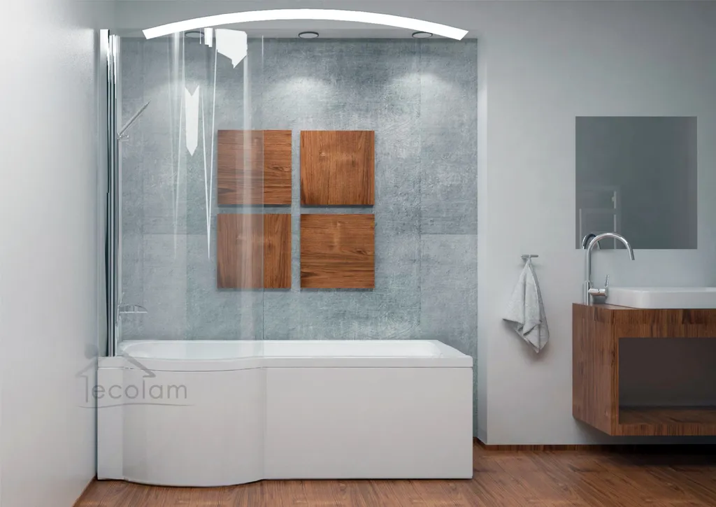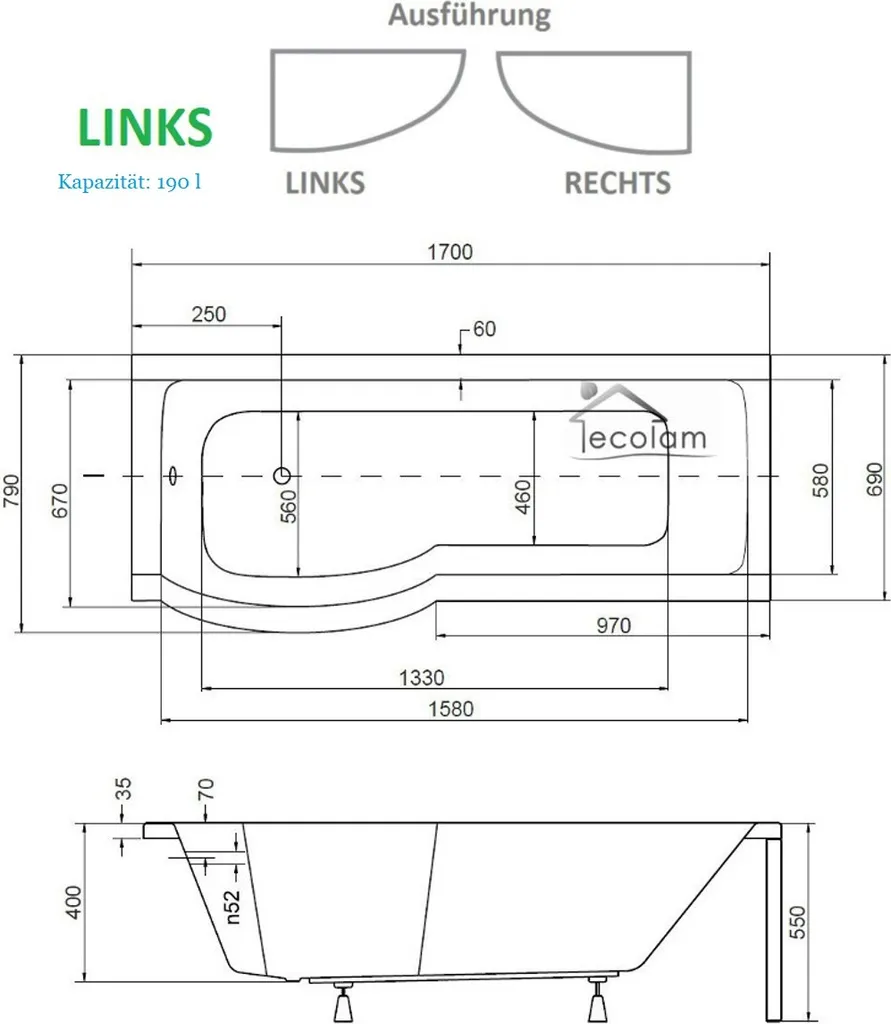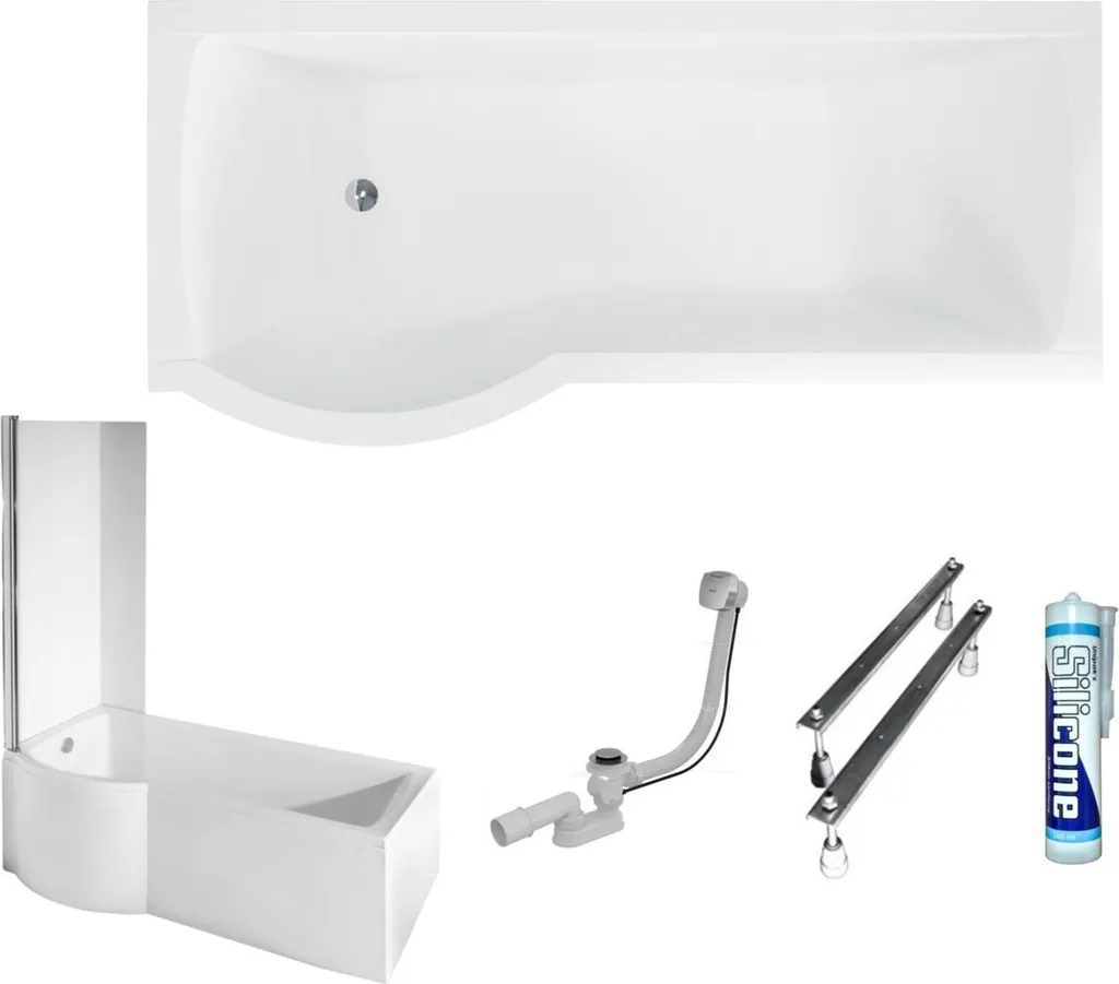 ECOLAM Duschbadewanne Set Badewanne + Glasabtrennung Duschwand Eckbadewanne I-Besco 170×70 LINKS Schürze Ablaufgarnitur Füße Silikon