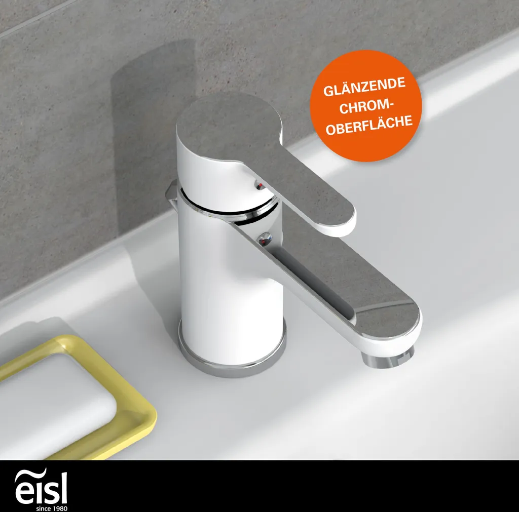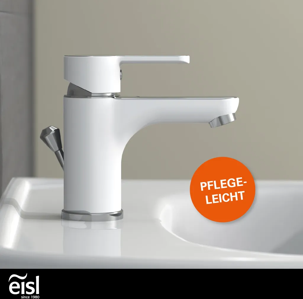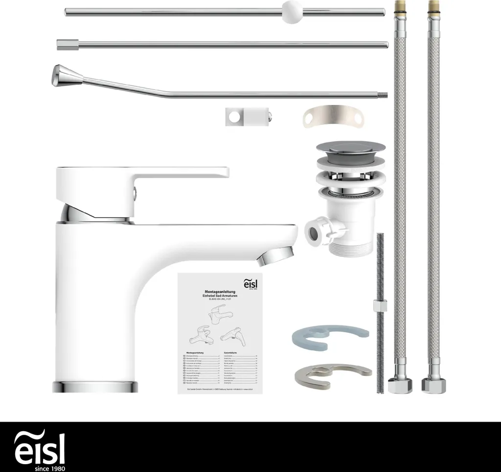 Eisl DIZIANI Waschtischarmatur Mit Zugstange, Wasserhahn Bad Mit Ablaufgarnitur Waschbecken, Weiß/Chrom
