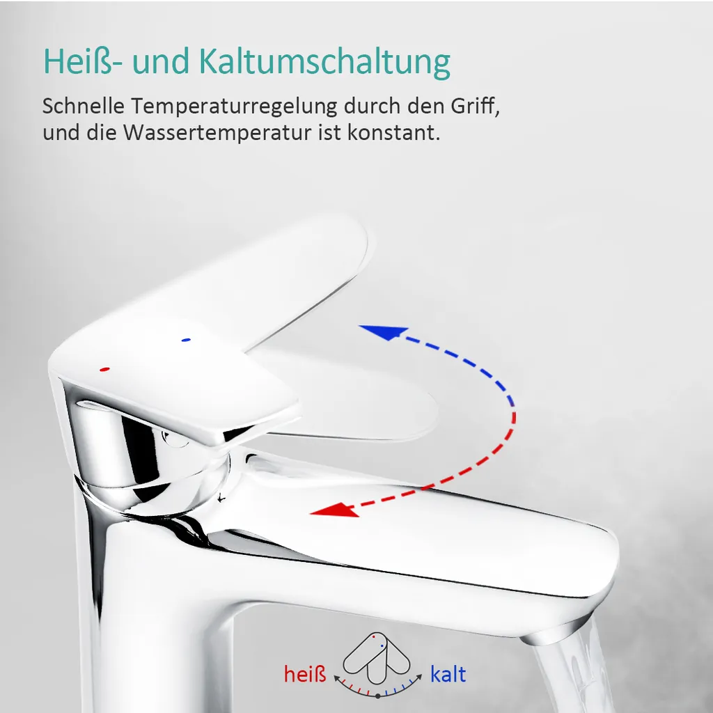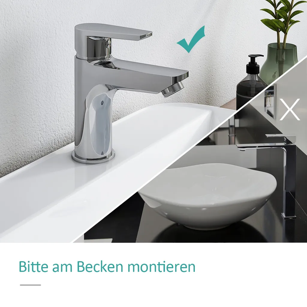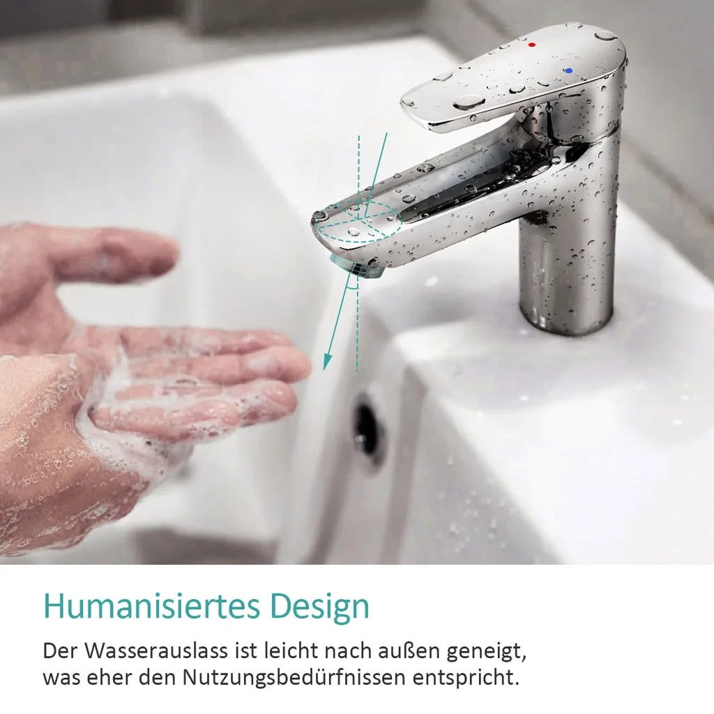 EMKE Waschtischarmatur Wasserhahn Einhebelmischer Verchromter Messingkörper Mischbatterie Spritzwassergeschützt Waschbeckenarmatur Für Bad