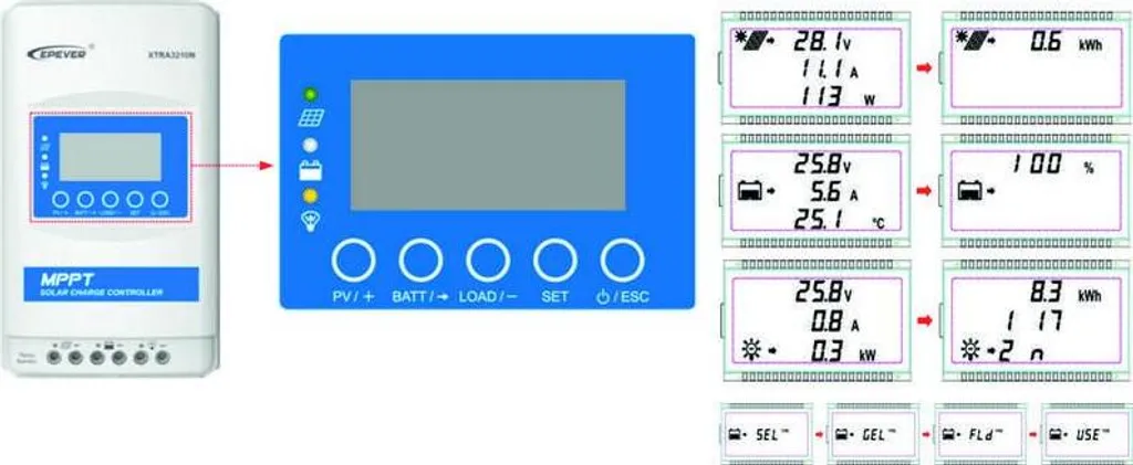 EP SOLAR EPEVER XTRA4210N Solar-MPPT-Regler 12/24 V, XDS2 40A, Eingang 100V