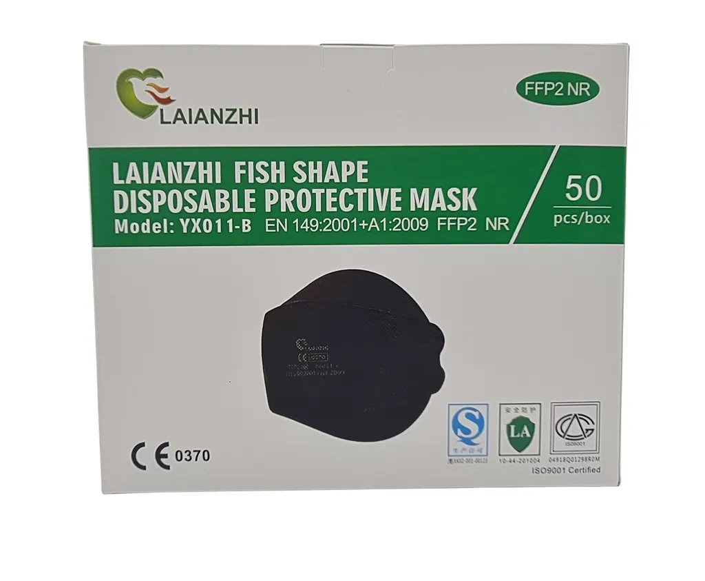 FFP2 Maske Fischform Bunte Farbauswahl Atemschutzmaske Mundschutz Masken CE 0370 Schwarz