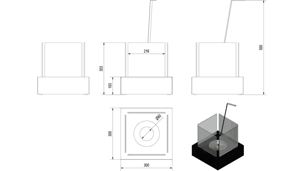 Freistehender Bioethanolkamin TANGO3 Schwarz
