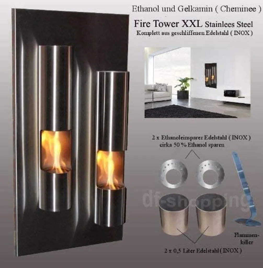 Gel- Und Ethanolkamin Kamin Fire Tower XXL Edelstahl