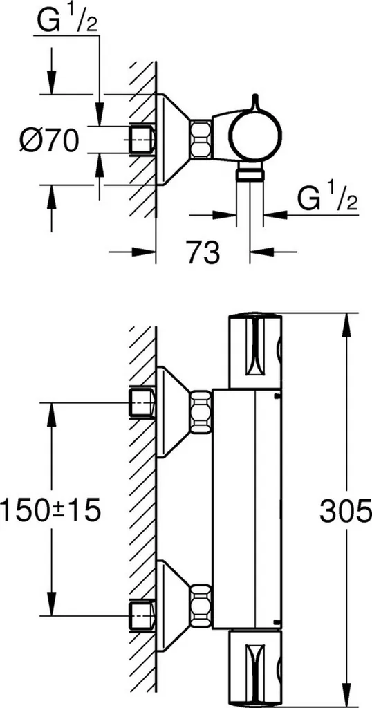 Grohe Thermostat-Brausebatterie GROHTHERM 800 DN 15, Wandmontage Chrom