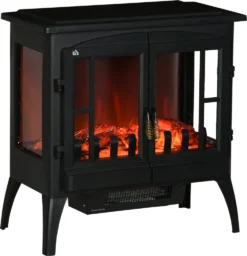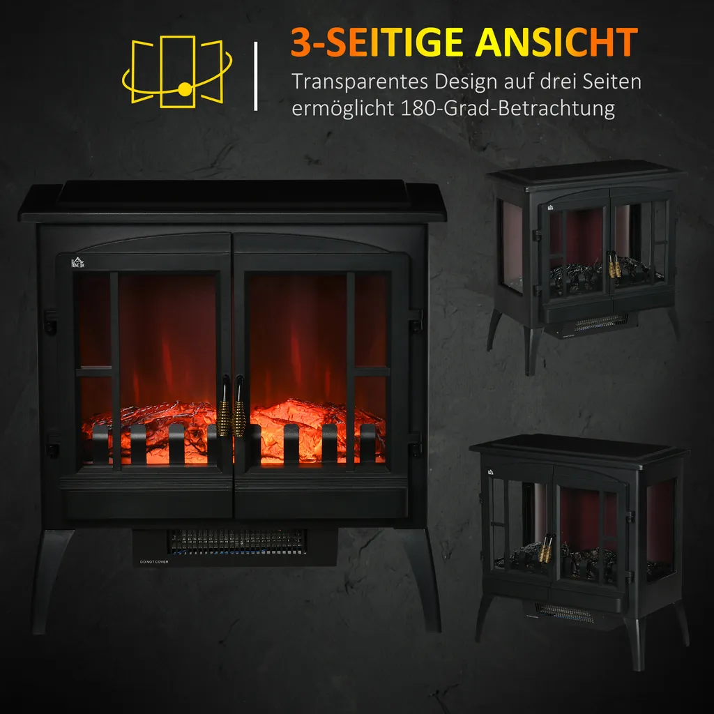 HOMCOM LED Elektrokamin 1000/2000W Standkamin Kaminofen Mit Flammeneffekt Innenraumheizung Mit Überhitzungsschutz 2 Heizstufen Stahl Schwarz 60 X 37 X 60,5 Cm