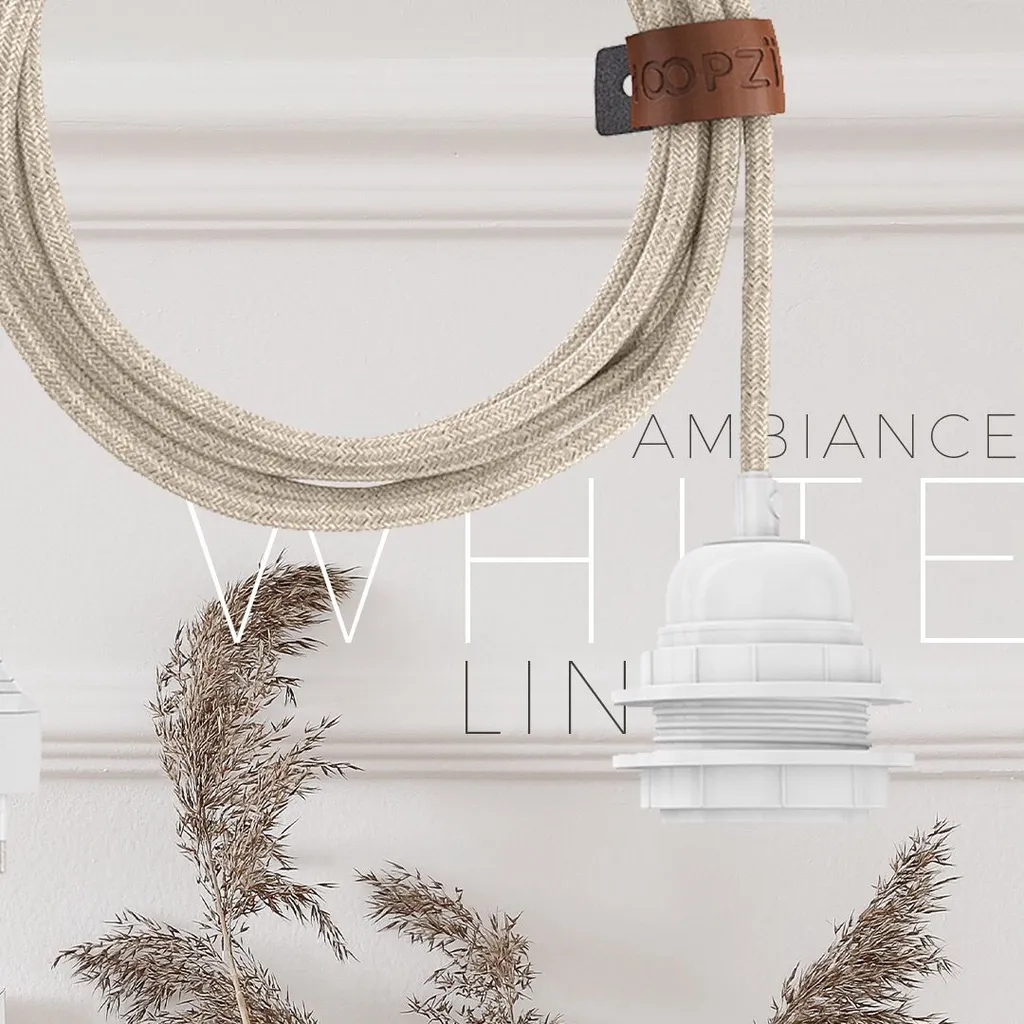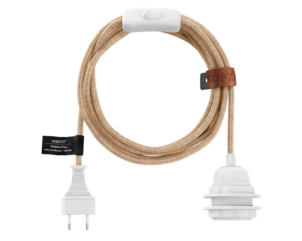HOOPZI – Bala – Fassung E27 Mit Kabel – Lampenfassung E27 Mit Kabel Und Schalter – Textilkabel Mit Fassung – Lampenkabel – Pendelleuchte – 4,5 Meter – Farbe Leinen Natur Und Weiße Fassung