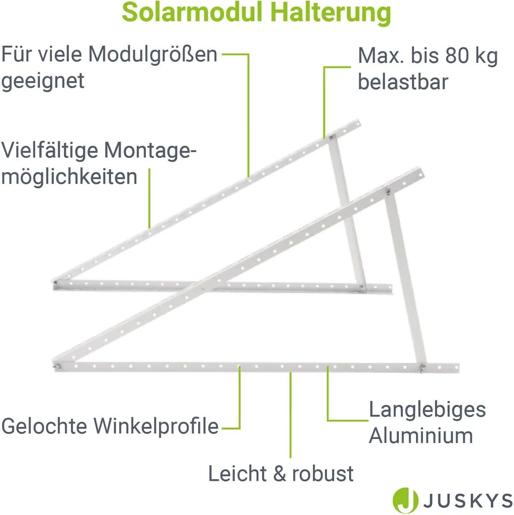 Juskys Balkonkraftwerk Montageset – Halterung Solarmodul Bis 80 Kg Photovoltaik Befestigung – Montagepaket PV-Anlage Solar Montagesystem Modulträger
