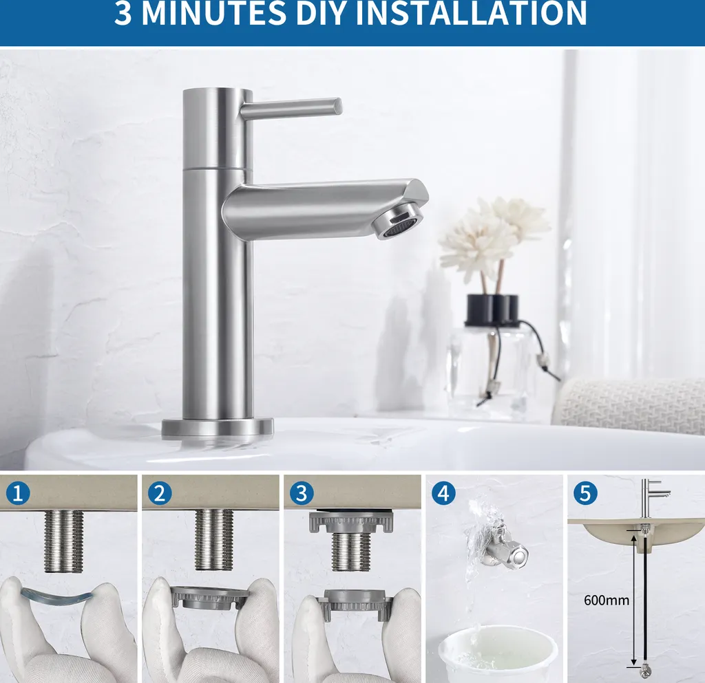 Kaltwasser Wasserhahn Bad Armatur Waschtischarmatur Badarmaturen Für Badzimmer Mit Anschlussschlauch