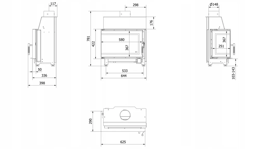 Kamineinsatz Aus Stahl SIMPLE Links 6 KW Ø 150 Mit Türfeder