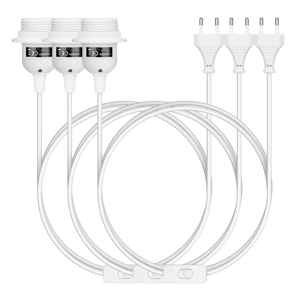 Kwmobile 3x E27 Lampenfassung Mit Schalter – E27 Fassung Weiß Mit 5m Netzkabel Schraubring Schalter – Lampenaufhängung Pendelleuchte Hängeleuchte