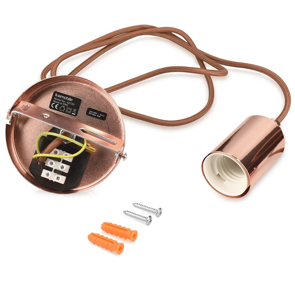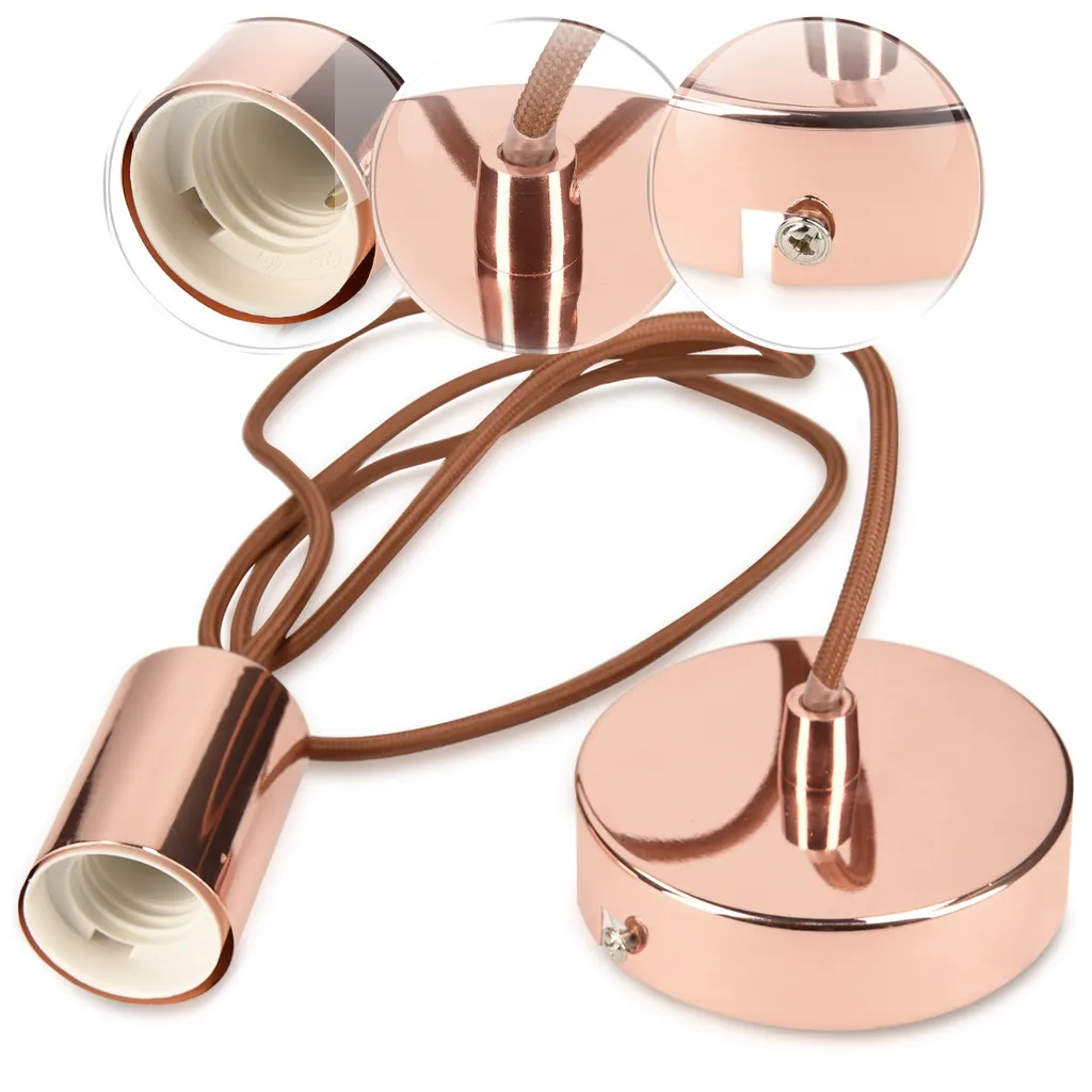 Kwmobile E27 Metall Lampenfassung Mit Textilkabel – Lampenaufhängung Halter In Kupfer Optik Mit Deckenbefestigung 1,30m Textil Kabel Braun