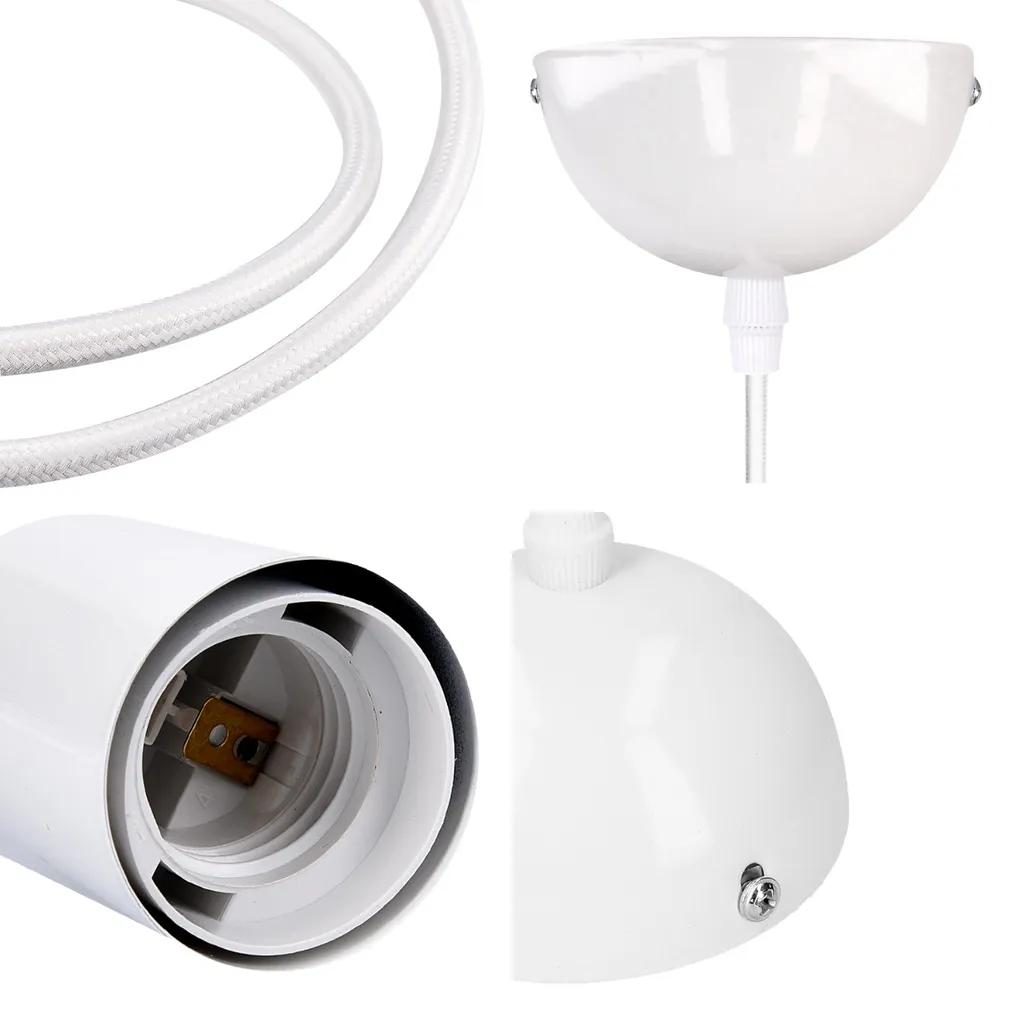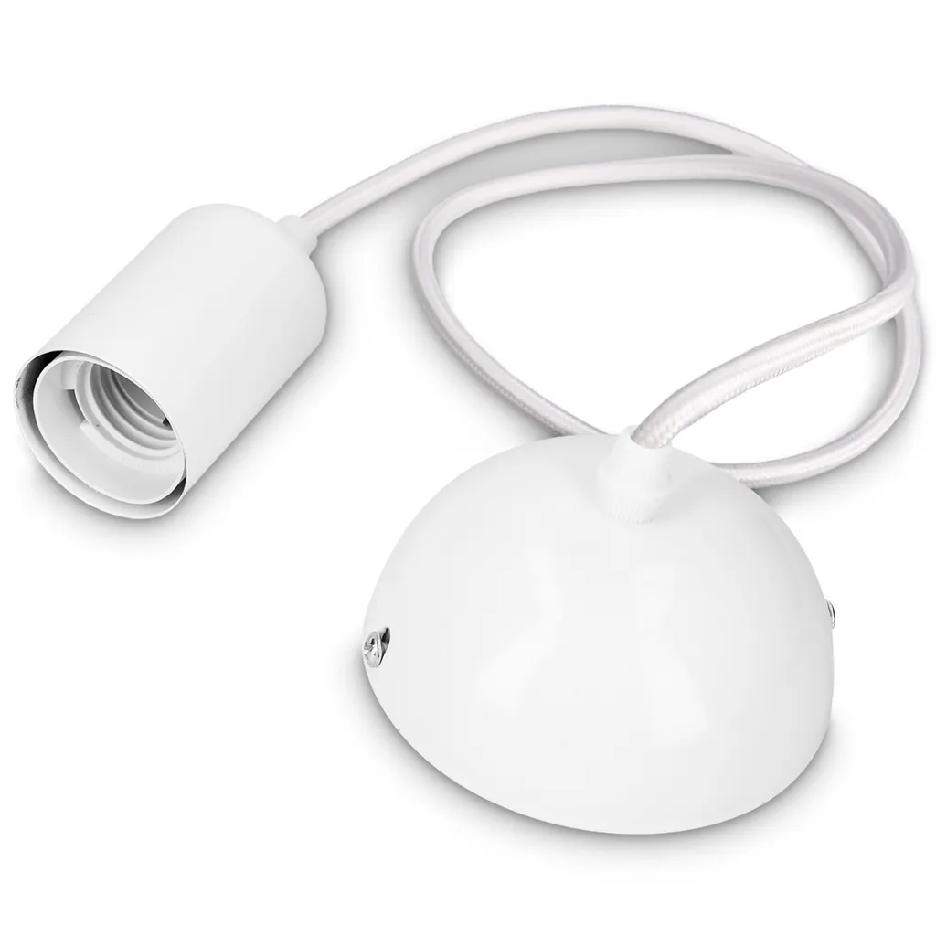 Kwmobile E27 Metall Lampenfassung Mit Textilkabel – Lampensockel Halterung Mit 90cm Kabel Weiß Weiß Und Deckenbefestigung – E 27 Lampenaufhängung