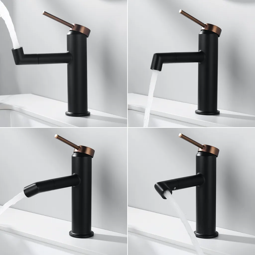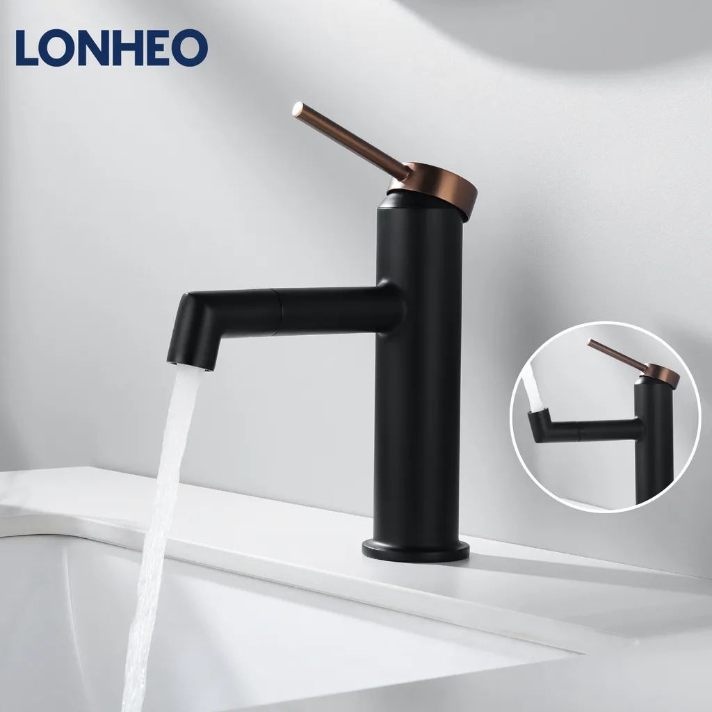 Lonheo Badarmatur 360° Drehbar Auslauf Hochdruck Wasserhahn Waschbecken Einhandmischer Waschtischarmatur Mischbatterie Fürs Badezimmer, Schwarz