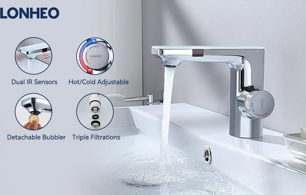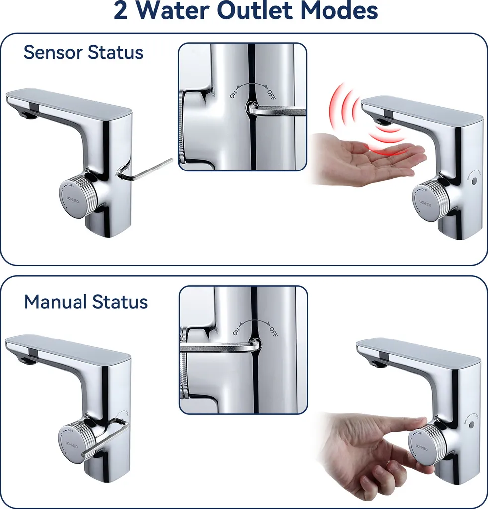 Lonheo Infrarot Sensor Wasserhahn Bad Automatik Waschtischarmatur Mit Zwei Infrarotsensor Einhebelmischer Waschbecken Mischbatterie Badarmatur, Chrom
