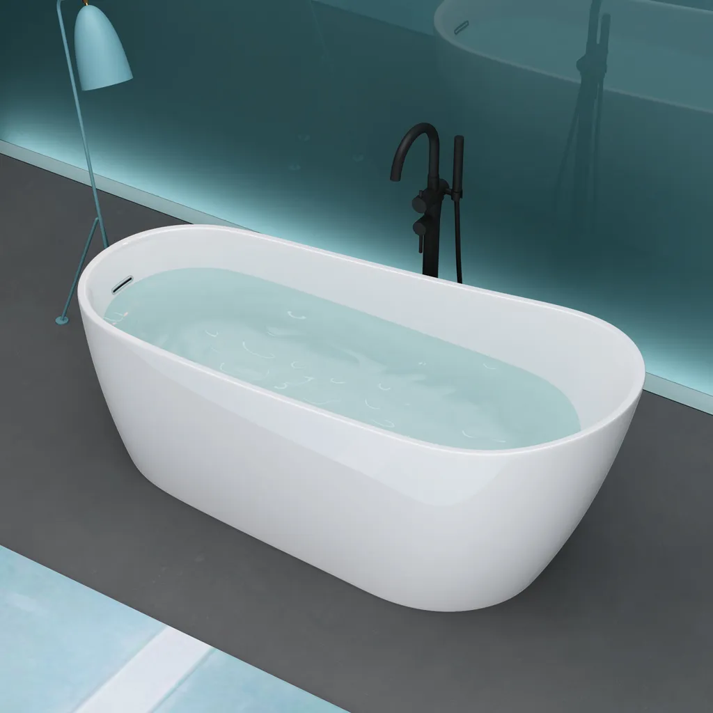 Mai & Mai Freistehende Acryl-Badewanne Oval Standbadewanne Weiß Inkl. Push-Open Ablaufgarnitur Breite 160cm V528