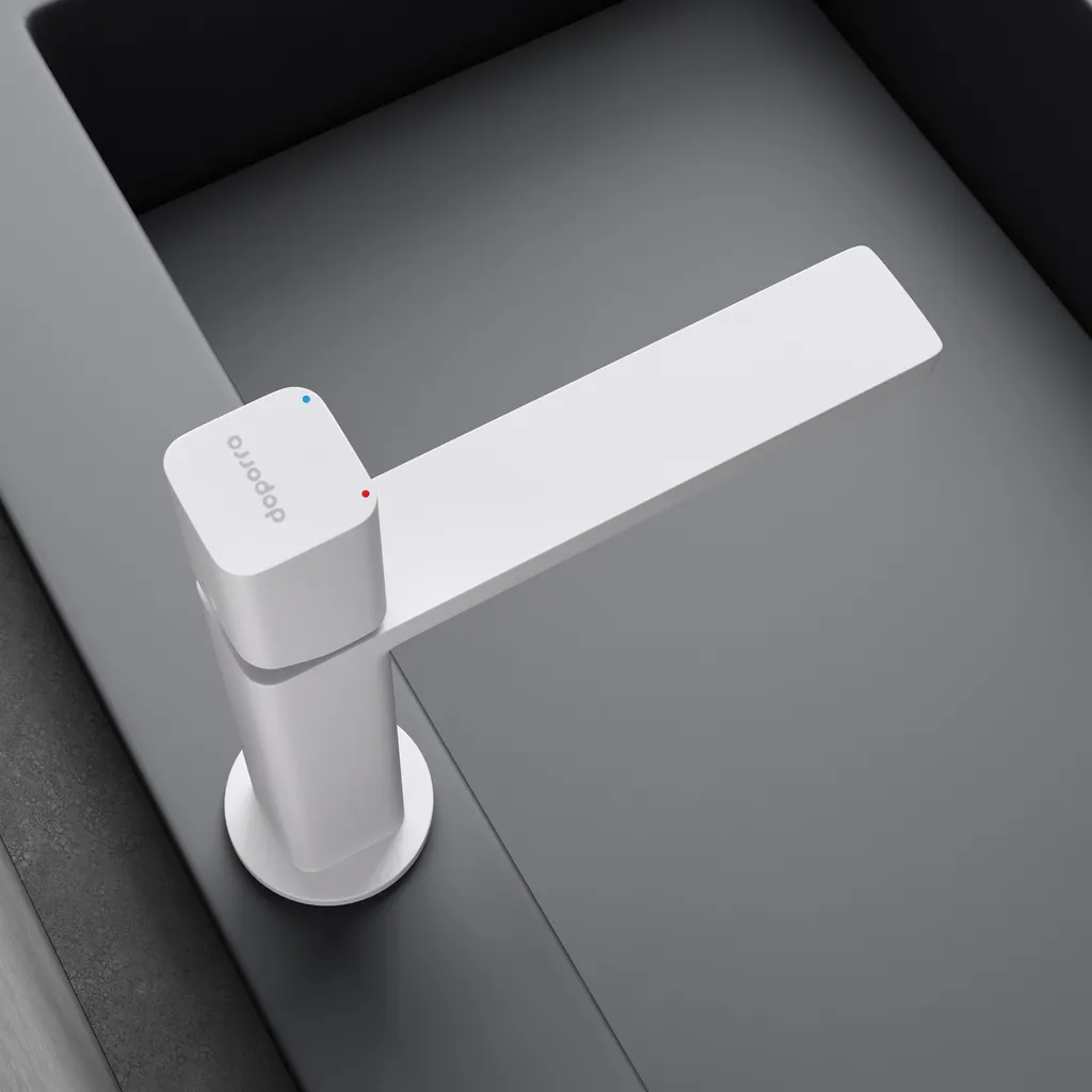 Mai & Mai Waschtischarmatur Wao-7901 Eckiges Design Badarmatur Weiß Waschtisch-Einhandmischer DIN-Anschlüsse