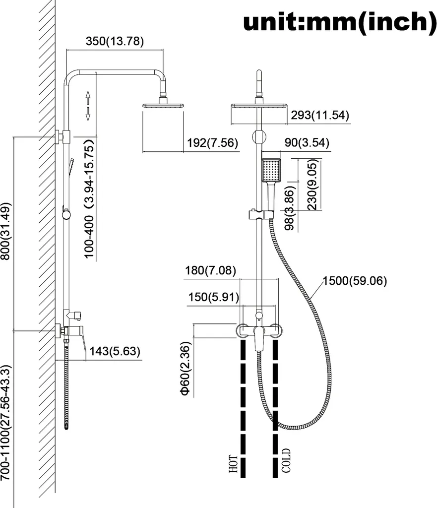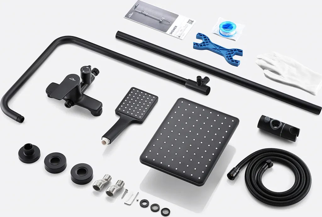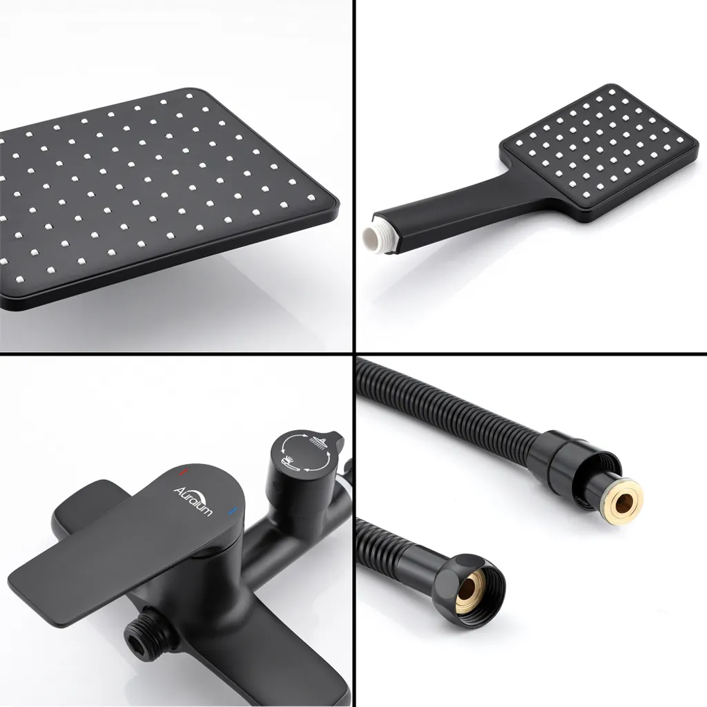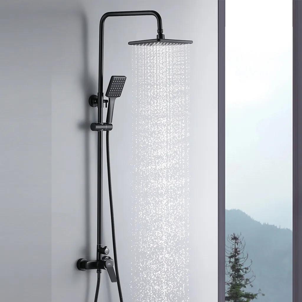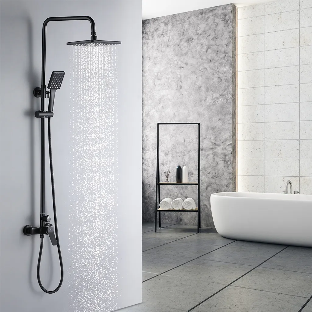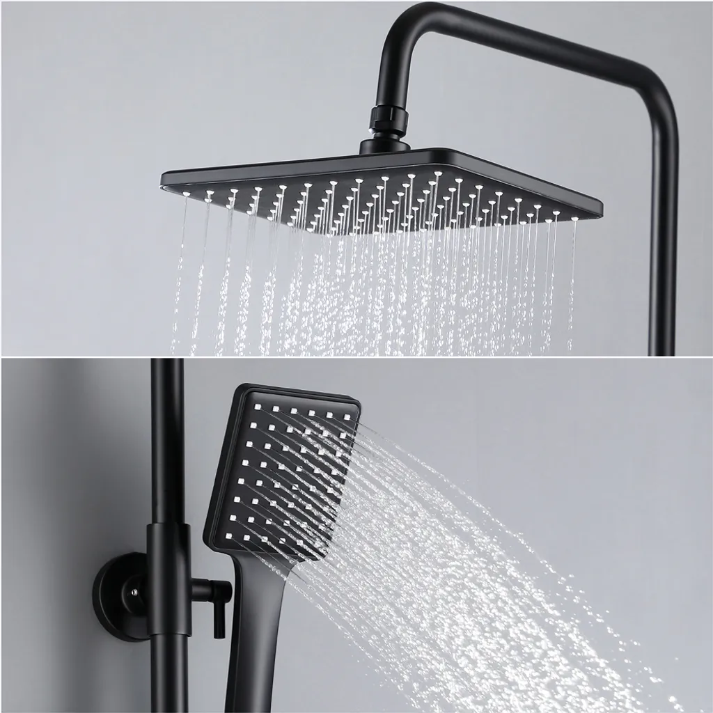Messing Brausegarnitur Duschset Regendusche Kopfbrause Handbrause Duschstange Duscharmatur Duschsystem Schwarz