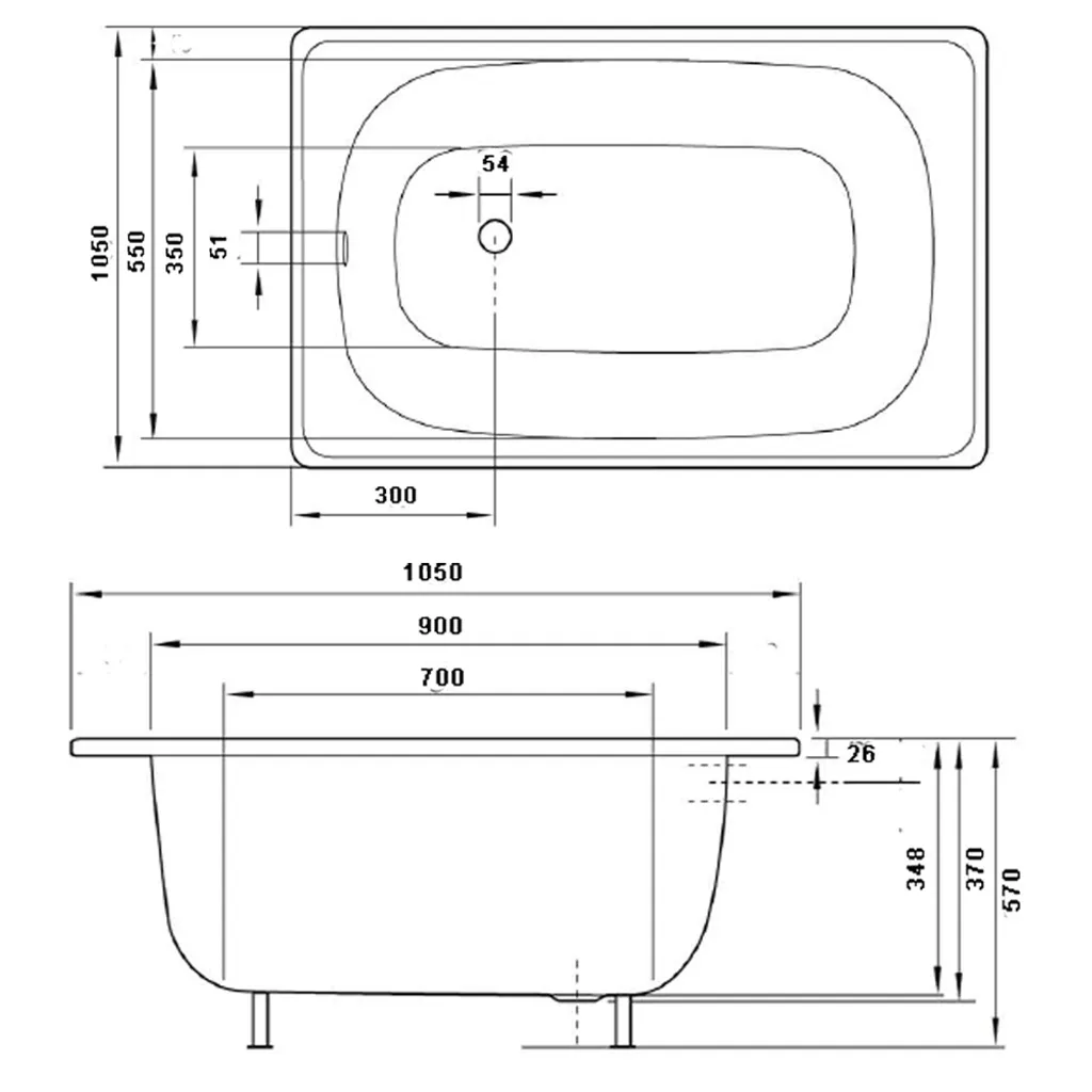 MINI Emaille-Sitz-Badewanne 105 X 65 Cm, Weiß