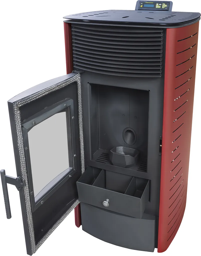 Nemaxx P12 Pelletofen Pelletkamin Pelletkaminofen 12 KW Kaminofen Heizofen Pellet Ofen Kamin Pelletheizung Heizung – Rot – WiFi-Ready