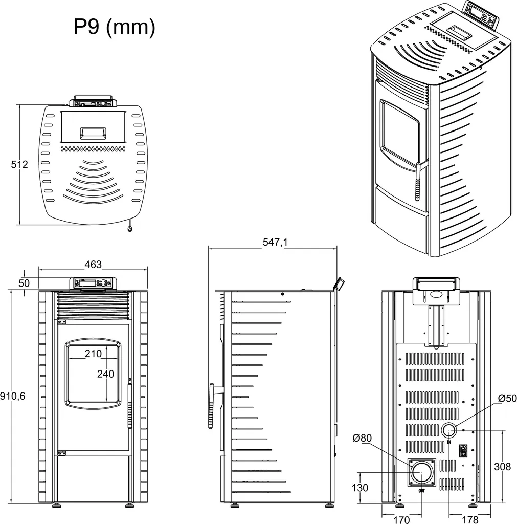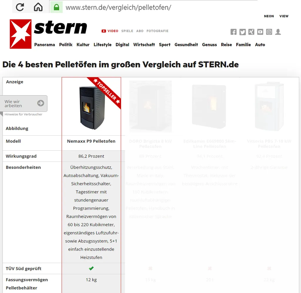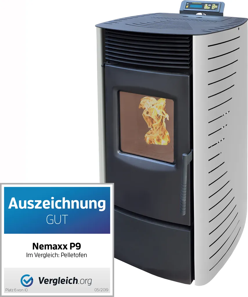 Nemaxx P9 Pelletofen Pelletkamin Pelletkaminofen 9 KW Kaminofen Heizofen Pellet Ofen Kamin Pelletheizung Heizung Heizgerät Kaminheizung Pellets – Weiß – WiFi-Ready