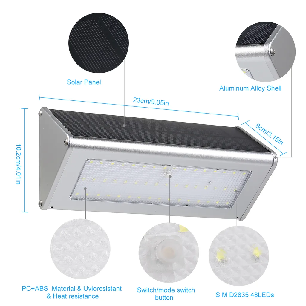 Neoglint Solar-Wandleuchte, Radar-Bewegungssensor, 48 LEDs, Superhelle 1100 Lumen, Wasserdichte Gartenlampe, Aluminiumlegierung, Gehaeuse Fuer Garten, Terrasse, Hof, Zaun, Garage, Deck